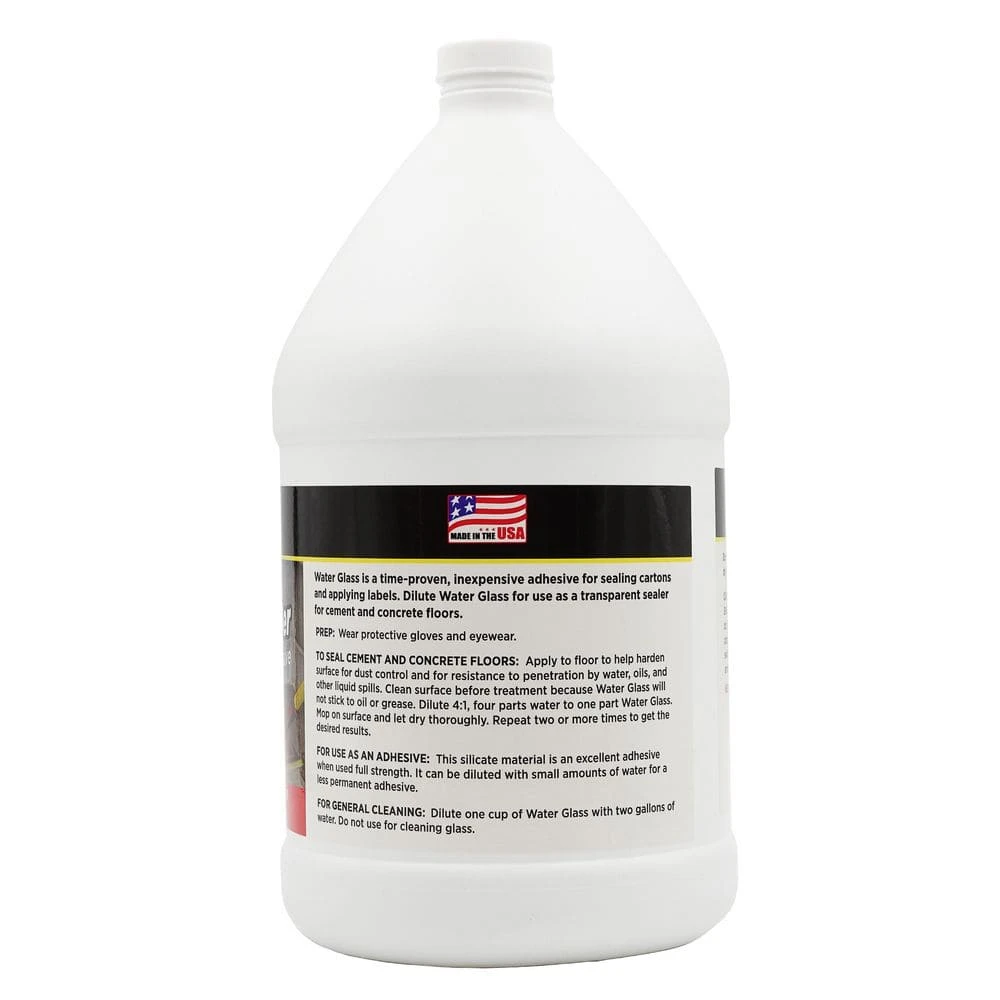 RUTLAND Water Glass Cement Floor Sealer has a unique formula that makes it a multi-use sealant and adhesive. When diluted, it becomes an excellent stain-resistant concrete sealant. Use full-strength for an effective and inexpensive adhesive for sealing gaskets, cartons, and applying labels.