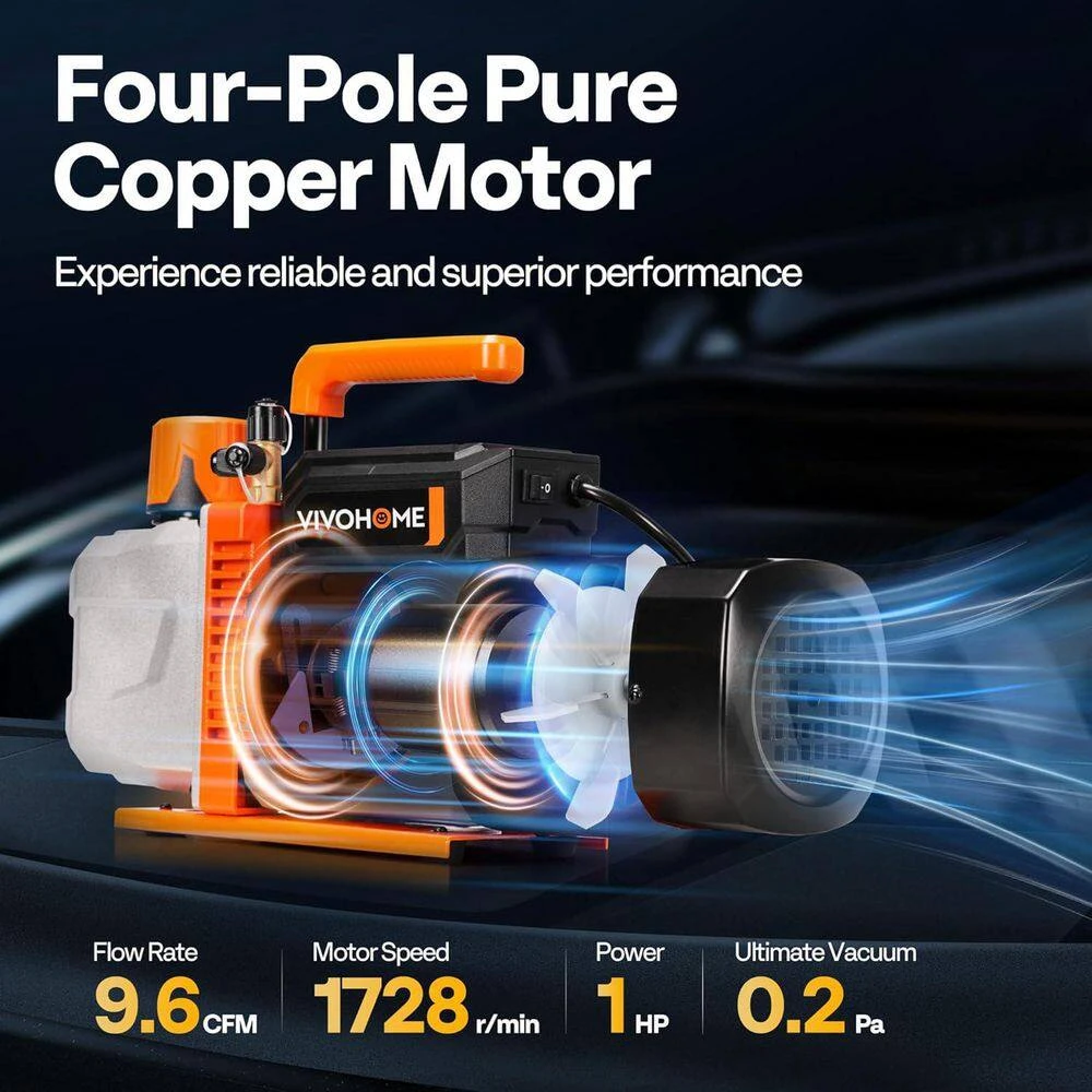 - VIVOHOME vg series dual-stage vacuum pump delivers outstanding performance with a 1 hp pure copper motor