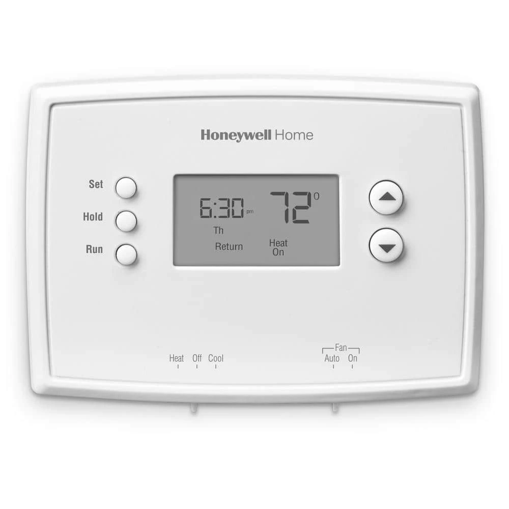 The Honeywell Home 1-Week Programmable Thermostat has a simple interface and offers one basic program for the entire week with 4 program periods. It automatically adjusts the heating or cooling of your home so you are comfortable when you wake up, come home or at any other time you prefer. Simple step-by-step instructions included with the thermostat make DIY installation easy.