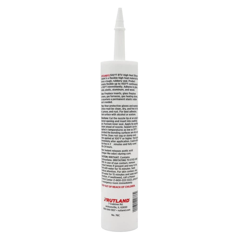 RUTLAND 500ºF RTV High Heat Silicone Sealant is a great solution for sealant and adhesive needs. Not only is this a powerful adhesive, it also seals gases and smoke permanently, with limitless uses in the home or even on a job site. Use it to seal fireplace inserts, repair solar panels, or apply ceramic tiles to your fireplace surround or heat shielding behind your stove. Seal a chimney cap to withstand wind, rain, and hot smoke. Silicone will adhere to most clean surfaces, including glass, metal, plastics, fiberglass, wood, brick, and stone. Available in different colors and sizes, a perfect combination exists for your project or repair!