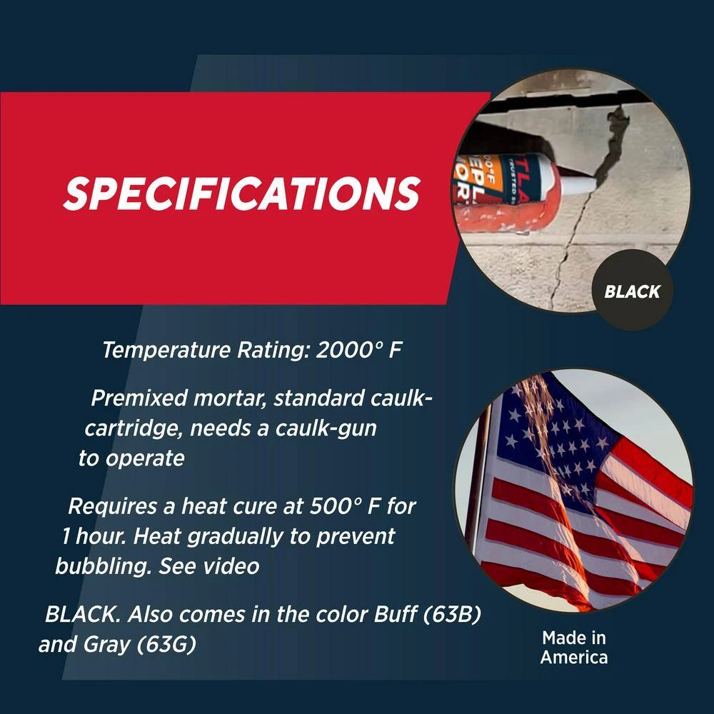 RUTLAND Fireplace Mortar is perfect for repairing small chips or cracked firebrick, re-pointing mortar joints between firebricks, and bonding firebricks together. Adheres masonry to masonry for brick, firebrick, and stone. Easy to apply with a caulking gun and will last for years. It sets as hard and as strong as firebrick after curing and can withstand the high temperatures produced by a wood fire.