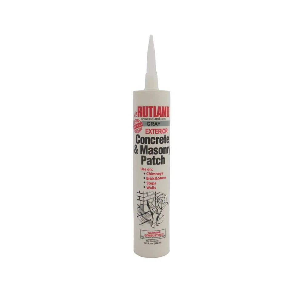 RUTLAND Concrete & Masonry Patch is weather-resistant and easy to apply. This multi-purpose cement patch dries hard and tough with a natural concrete finish. Useful for repointing and making small repairs to broken mortar in chimneys, steps, sidewalks, foundations, windowsills, and fireplace faces. Not high-heat rated.