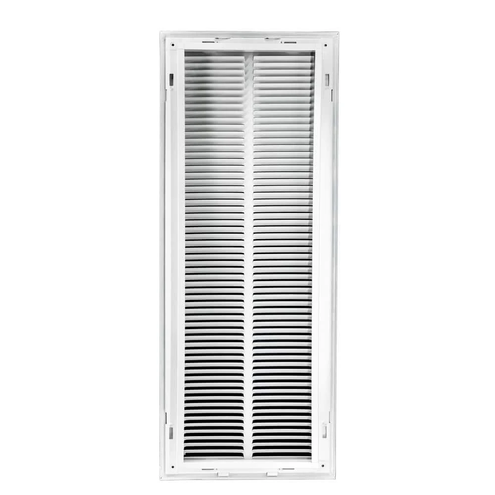 For use as return air grille in heating, cooling and ventilating applications. Installed on sidewall or ceiling. Accepts 1 in nominal thick filter. The white color coordinates with most backgrounds and can be easily painted over.