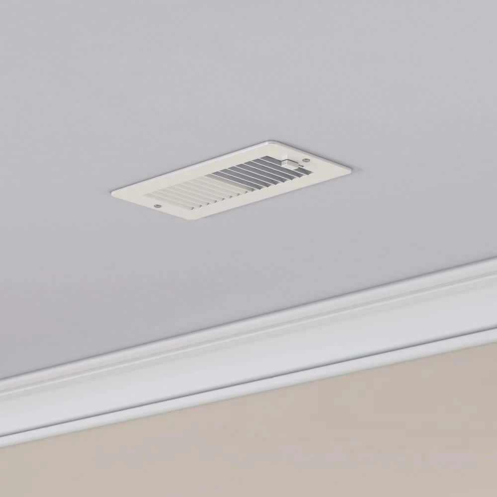Control airflow, improve aesthetics and make your living space or work environment more comfortable with a ceiling register. Made to face outward from the HVAC system, a ceiling register naturally hides unappealing ductwork while also directing airflow. Its push/pull damper can open or close to control how much air enters a room. Enjoy multidirectional airflow and better ventilation with these essential devices. Made with high-impact polystyrene for a rust proof, and paintable design. Mounting hardware included.