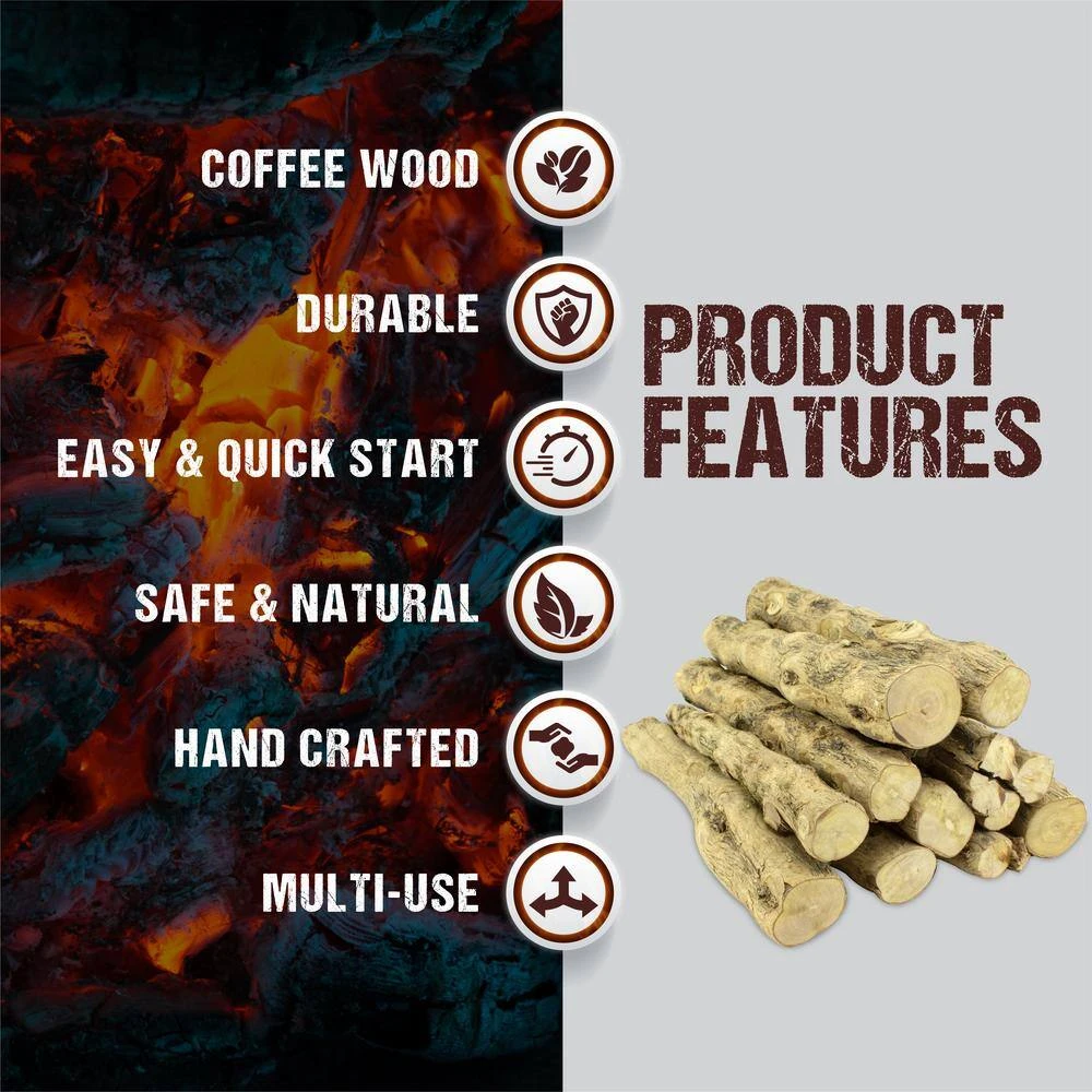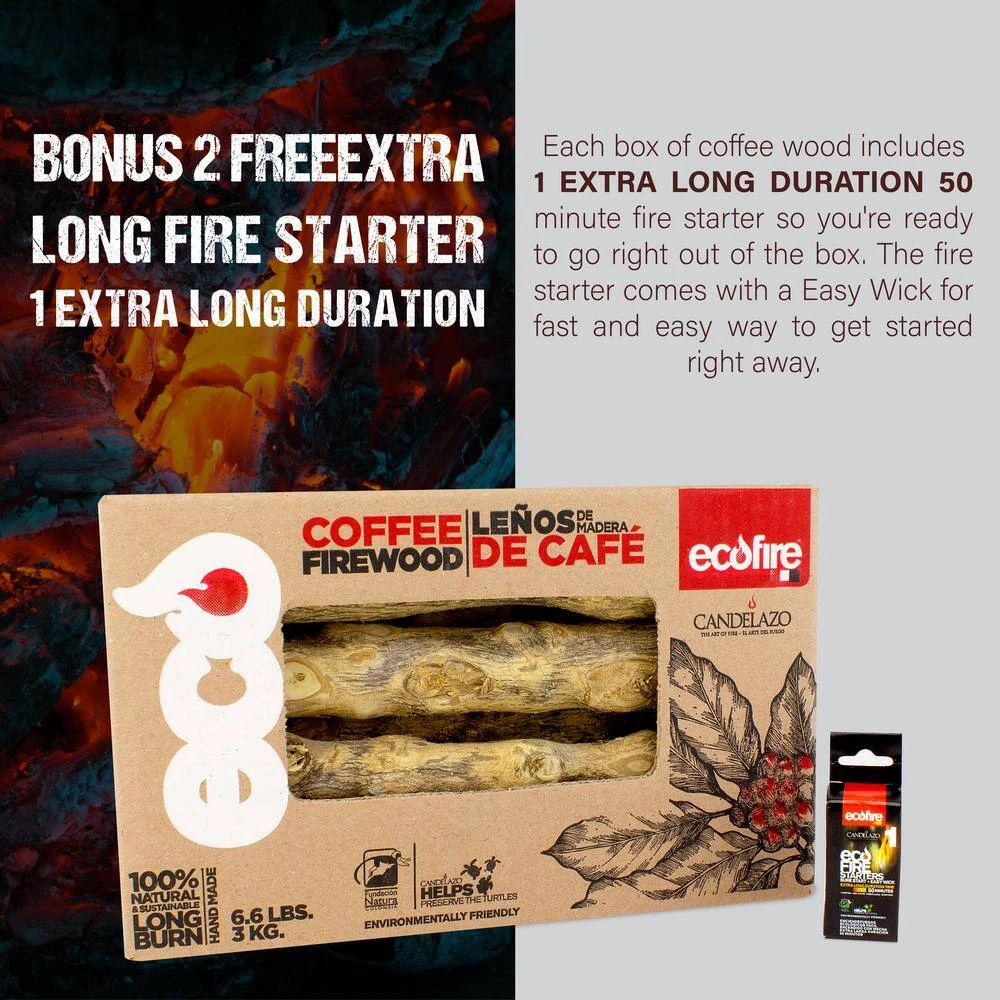 - Bonus 2 free extra-long fire starter: each box of coffee wood includes 1 extra-long duration 50-minute fire starter so you’re ready to go right out of the box, the fire starter comes with a easy wick for fast and easy way to get started with the coffee wood. just like our coffee wood, the fire starters are 100% natural pine wood, wax and cotton, there are no additional additives with our fire starters, making it ideal for all occasions from outdoor heating, fire place, bonfire, fire pit, BBQ and more