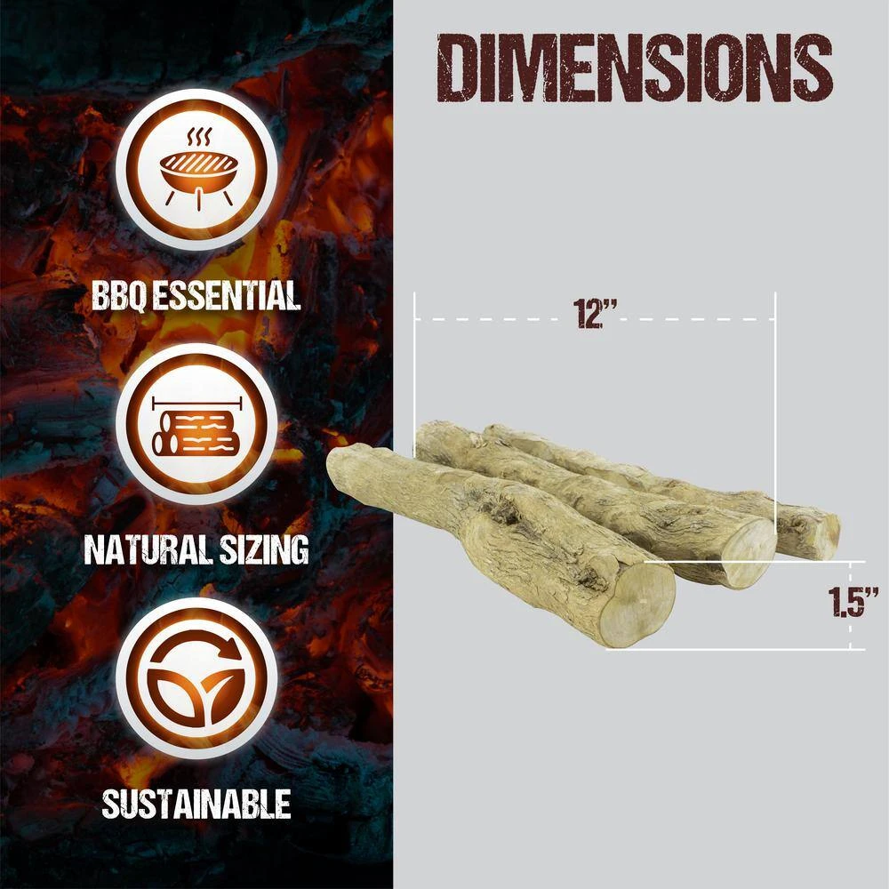 - Hand crafted: due to the nature of wood, each piece is unique and will not be uniform in dimensions, each piece is 12 in. L and 1.5 in. Dia to 2 in. Dia, making it the perfect size for fireplace, smokers or building a lean-to fire, the box is compact and easy to carry and conveniently fits in any trunk or camping equipment bags