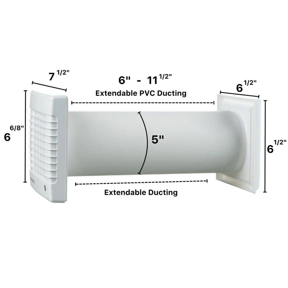 - Extendable PVC Ducting: Fits wall thicknesses from 6 in. to 11.5 in. for easy installation