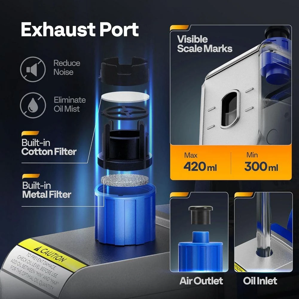 - Vacuum pump base is added 4-composite rubber feet, non-slip base increases product stability