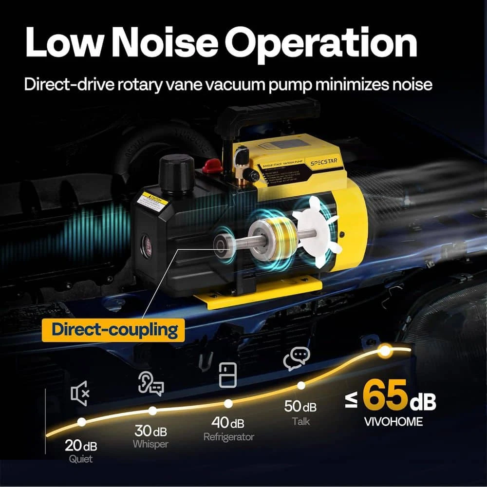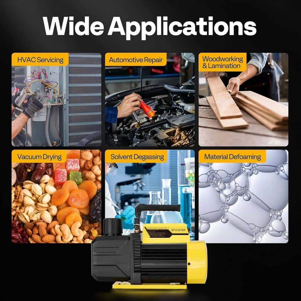 Make your air conditioning job easier than ever with this SPECSTAR vacuum pump. High-quality material with an ultimate vacuum of 2 Pa ensures clean and efficient removal of the gas with low noise. Whether for commercial or domestic use, let SPECSTAR vacuum pumps accompany you.