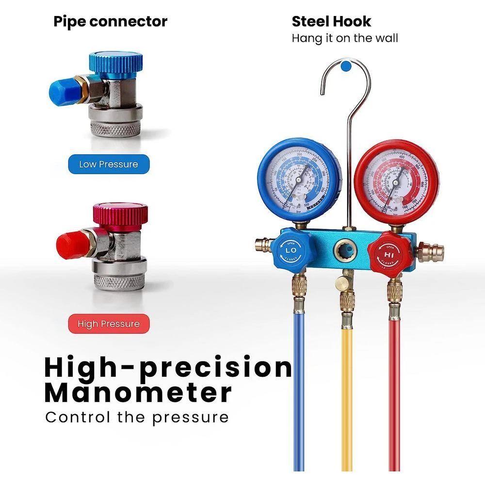 - Manifold gauge set is designed specially to measure pressure in refrigeration equipment