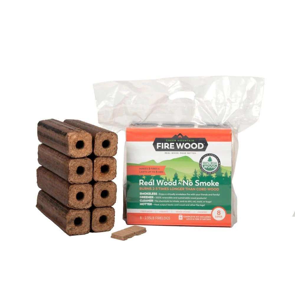 Green Mountain’s proprietary patented 100% wood composition and process makes it possible to bring to market the Cleanest, Most Efficient, Most Advanced Firewood On Earth. You can use for home heating, hearth and pit fires and cooking. Size of wood is perfect to use with all sizes of indoor and outdoor fireplaces. Great firewood to burn and create a nice ambience.