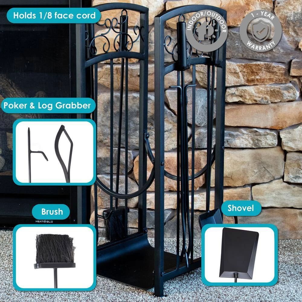 - Designed for long-lasting strength and beauty: this fireplace log holder with tools is made from heavy-duty, powder-coated iron to ensure durability and style