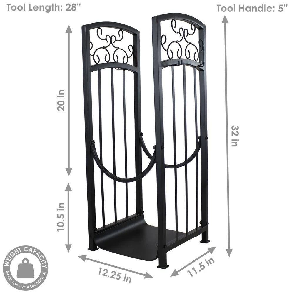 - Compact and light-weight: this decorative firewood log rack measures 12.25 in. W x 11.5 in. D x 32 in. H and weighs 11.6 lbs., the top section of the rack measures 12.25 in. W x 11.5 in. D x 20 in. H and can hold up to 50 lbs., the bottom section of the rack measures 12.25 in. W x 11.5 in. D x 10.5 in. H and can hold up to 20 lbs. each fireplace tool measures 28 in. H and has a 5 in. L handle to make tending to the fire easy