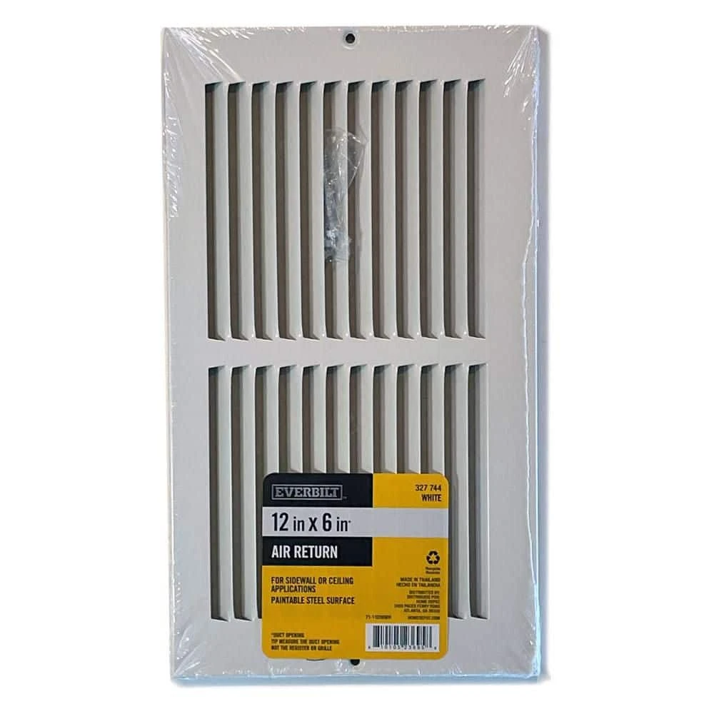 Everbilt Air Return Grilles are designed for maximum air return flow in ceiling and/or sidewall HVAC applications. Our grilles are constructed from stamped steel and finished in a paintable white powder coat finish. Return grille sizing is based on actual duct opening not the overall dimensions of the grille.