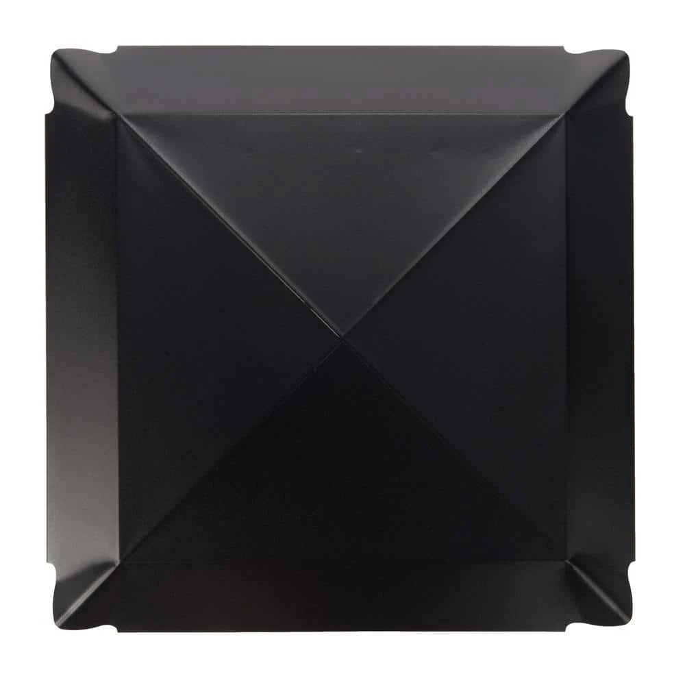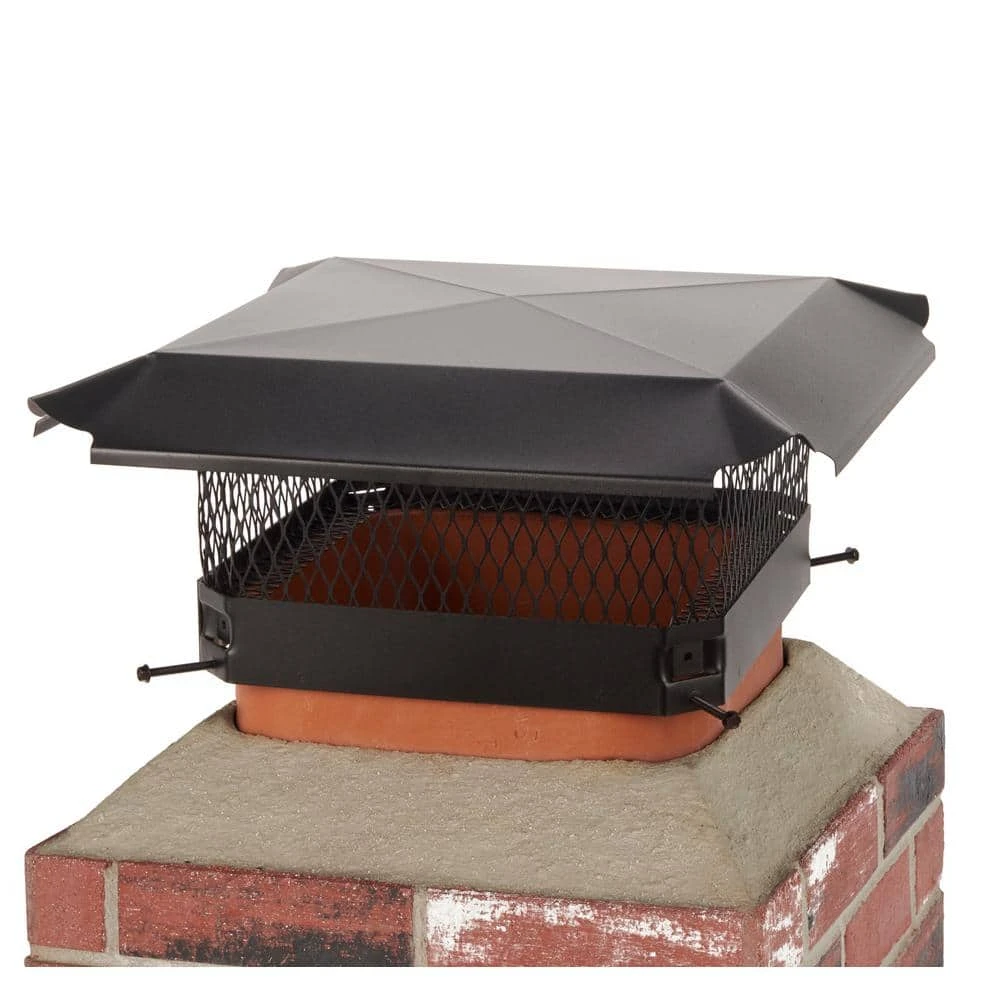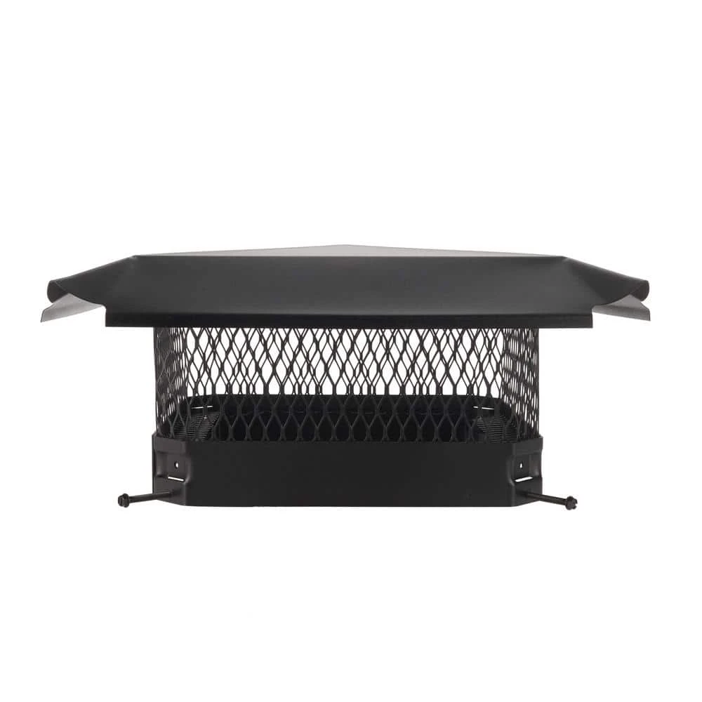 The Black Galvanized Steel Draft King chimney cover is the durable and economic choice for chimneys in most regions. Like all Draft King chimney covers, the outside mounting design provides maximum free air space and better draft while the attractive powder coat finish helps it stand up to the elements. Made with a 24-Gauge galvanized steel hood with scalloped corners and roll-formed edges, 18-Gauge 5/8 in. expanded galvanized steel mesh, 14-Gauge galvanized steel base and slotted hex-head bolts. Seven year limited warranty.