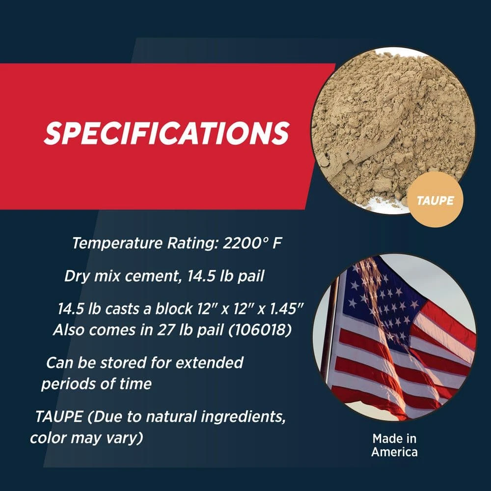 Rutland Castable Refractory Cement is an exceptionally strong dry-mix cement that chemically sets and dries as hard as brick. Just add water. Perfect for casting into custom designs because it holds its shape while drying, just add water. It can even be used as the sole material when casting a solid stove bed or outdoor oven. Also works to fill large holes or cracks in masonry, replace mortar, and for tuckpointing.
