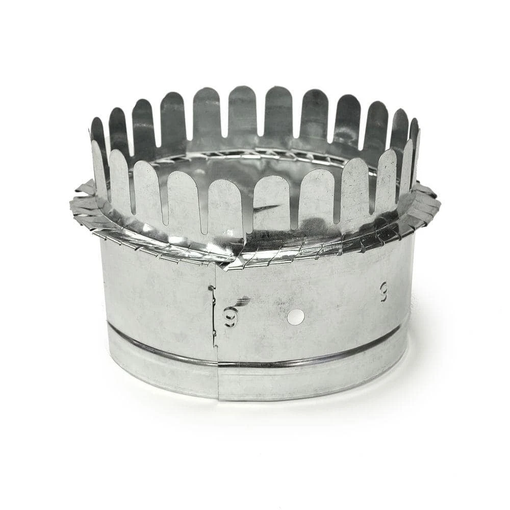 The Master Flow 14 in. Starting Collar has a snap-together design for easy assembly. This starting collar can be used to transition from a flat surface such as a lined or duct board plenum to round pipe or insulated flexible ducts. Can also be attached to metal surfaces. Made of galvanized steel, this starting collar is made for durability. The 2 in. space between the bead and flange provides you with plenty of space for securing an insulated flexible duct.