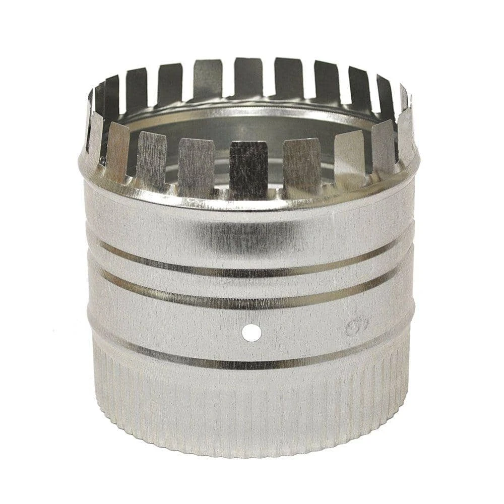 The Master Flow 14 in. Starting Collar is suitable for most HVAC applications. It provides a transition from a flat surface like a plenum (made from metal, duct board or insulated) to round pipe or insulated flexible duct. It can be used with duct board, an internally lined or unlined plenum. This galvanized steel starting collar features extra-long tabs to fit most duct board thicknesses.