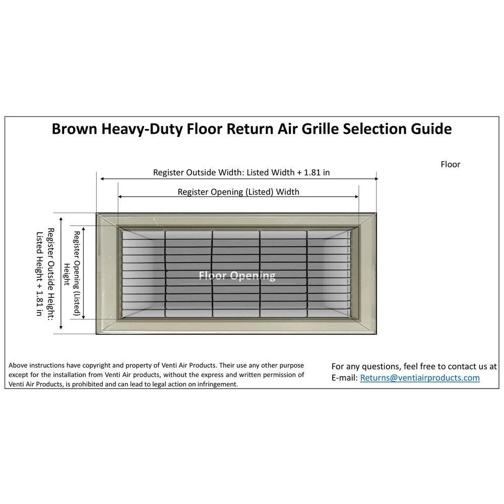 For use in heating, cooling and ventilating applications. Installed on floor. Made of Steel and Powder coated in Brown for smooth and glossy finish.
