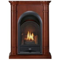 This ProCom Dual Fuel Ventless fireplace features yellow glowing flames and 4 hand-painted ceramic fiber logs to add the radiance of a fireplace to your home without the mess. Recessed into an elegant walnut finished mantel with burnished edges and Pallisters that are beveled, this zero clearance unit creates up to 15,000 BTU and is the only gas insert we sell that is approved for use in your bedroom. Take comfort in the charm and warmth of a cost-effective and energy efficient fireplace at the push of a summary.