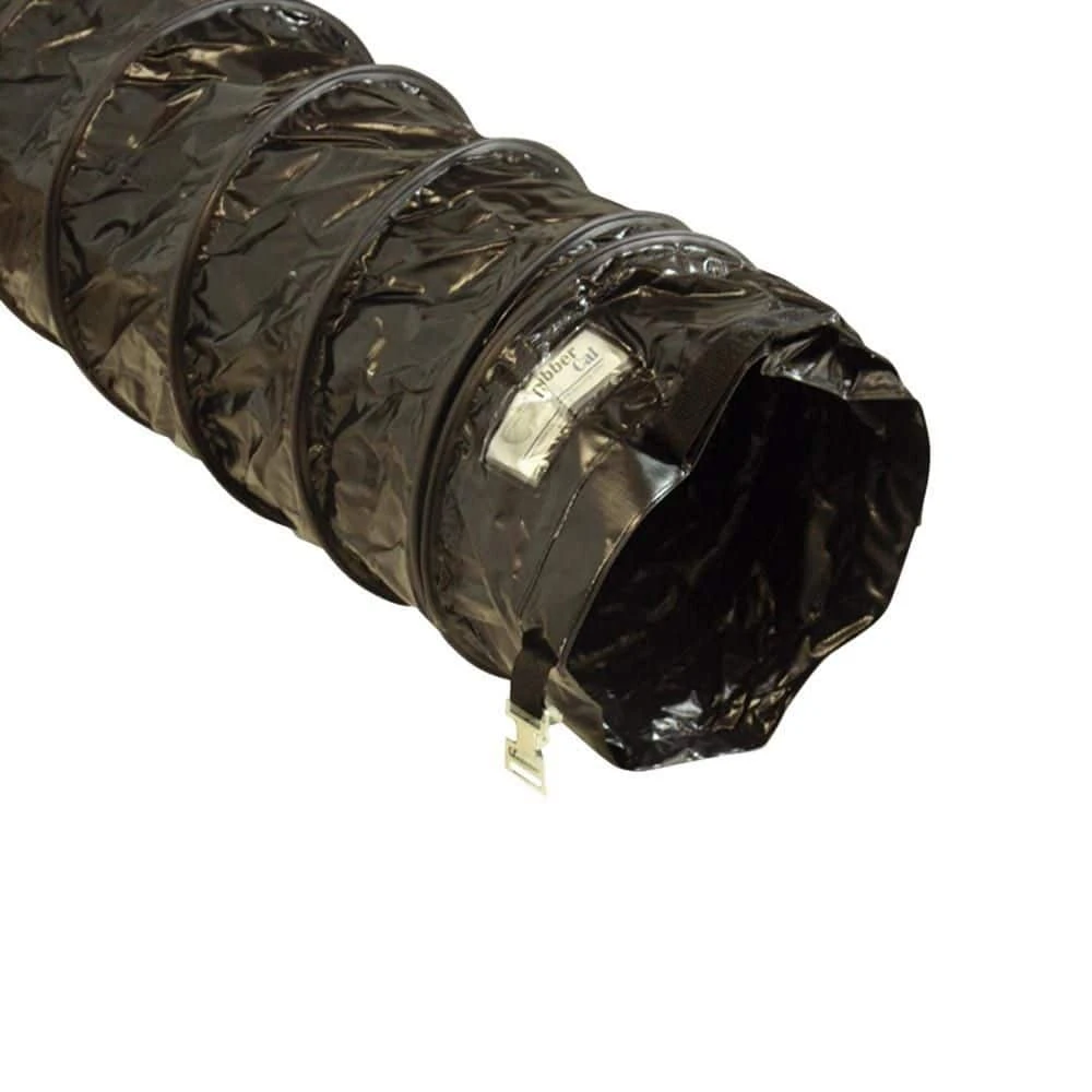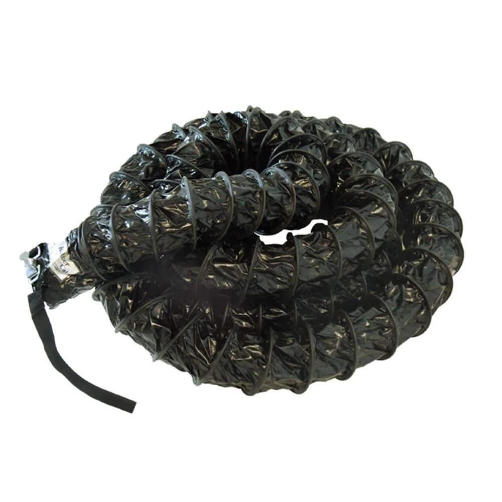 The Air Ventilator black is the ultimate flexible ducting solution for wide ranging air movement applications. Tough enough for industrial applications and affordable enough for residential use. Air Ventilator also has a temperature tolerance of -20° to +180° F. It can be used in anything from dehumidifier ducting to HVAC, portable air conditioning, smoke and hot air transportation, as well as all-purpose ventilation. These hoses are lightweight, constructed from a PVC-coated polyester fabric, making them exceptionally tough and durable. The body of the Air Ventilator is reinforced with a spring steel helix, which gives the duct work a higher degree of strength and helps it to keep its shape when flexed and put under pressure. The external wear strip combined with its rugged coating protects the hose from excessive wear when it is dragged across the ground and ensure that it remains effective for the long term. Coming in standard lengths of 25 ft. when fully stretched, Air Ventilator hoses are extremely flexible and compress easily. A 25 ft. hose can be retracted down to just 3 ft. for tight-bending contortion when in use which allows for easy transportation and storage the rest of the time. This hose comes in a variety of sizes ranging from a 4 in. inner diameter to a 24 in. inner diameter. Each end of the Air Ventilator is also fitted with belted cuffs, giving you a built-in quick and easy installation option without the need for clamps.