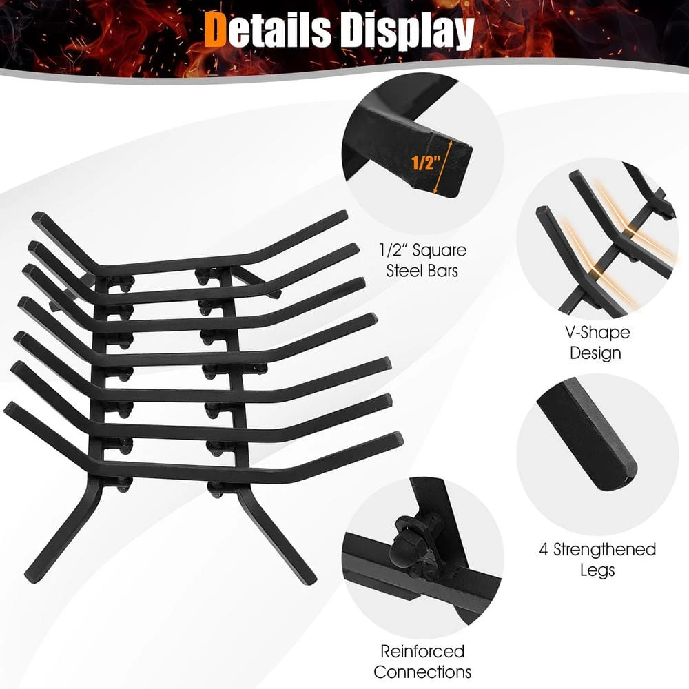 - Simple installation, consisting of 7 supporting bars and 4 stable legs, this fireplace grate with simple structure is easy to put together within several basic steps, also, the instruction will clearly show you every installing step