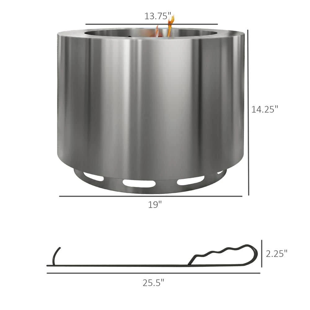 - Smokeless deck fire pit info: overall dimension: 19 in. Dia x 14.25 in. H, inner wood burning space: 13.75 in. Dia poker length: 25.5 in. L