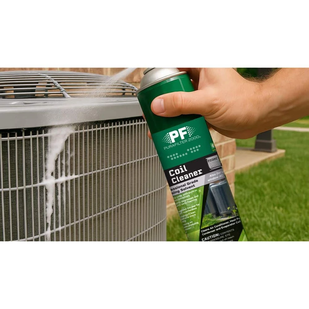 The PURAFILTER 2000 Coil Cleaner is a professional grade aerosol foaming cleaner. This product is designed to clean HVAC evaporator and condenser coils and protect coils with built-in corrosion inhibitors. Easily cleans coils to maintain your HVAC systems efficiency. Use throughout the year for regular DIY maintenance, at a minimum, every Spring and Fall.