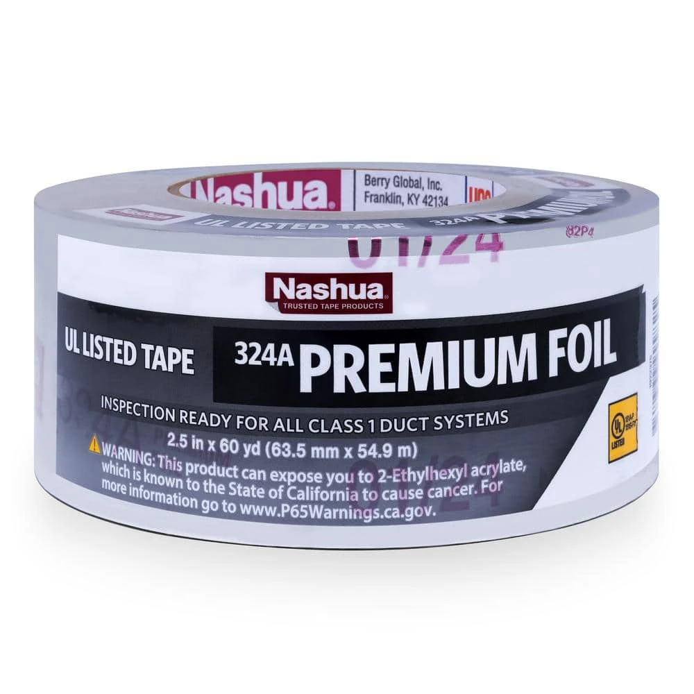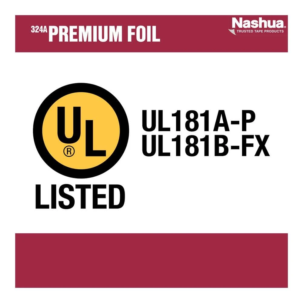 Professional results that a DIYer can be proud of begins with 324A Premium Foil HVAC UL Listed Tape by Nashua. This foil tape is UL coded approved for sealing class 1 rigid (181 A-P) or class 1 flexible (181B-FX) duct joints and connections. With a heavy-duty foil backing that is printed for easy inspection and an aggressive acrylic adhesive, Nashua 324A is the ideal choice for heating, ventilation and air conditioning installations that require a code-approved product. Nashua Tape. Trusted by professionals. DIY approved. Count on Nashua to get the job done right.
