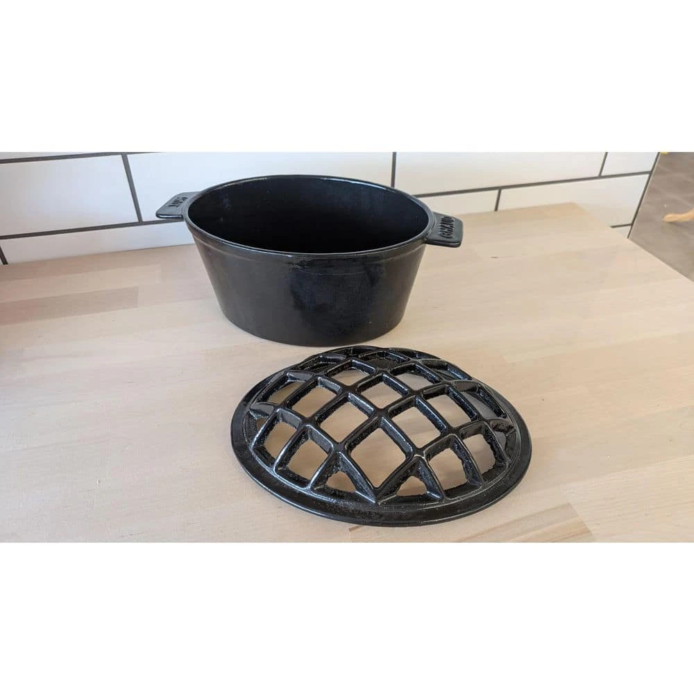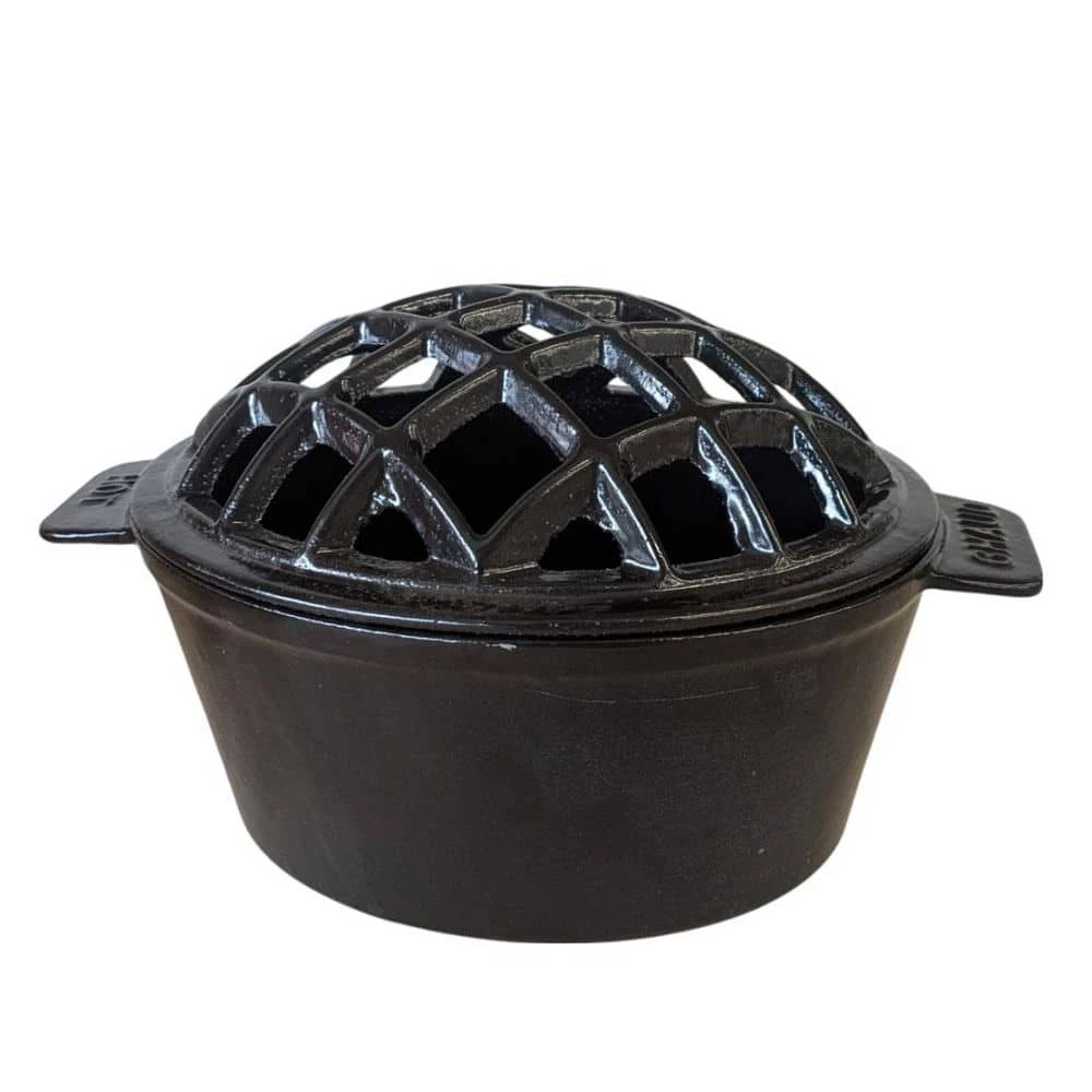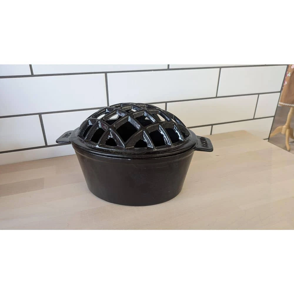 The Cast Iron Wood Stove Steamer Kettle with Honeycomb Top by Plow and Hearth is an attractive way to add healthy humidity to dry winter air. Place this cast iron steamer on your stove top, fill with water, and let it bring moisturizing relief as steam rises from the honeycomb lid and spout. Our large capacity steamer kettle with removable lid holds approx. 3 qts. of water, so it won’t run dry when left on your stove overnight, and it doesn t need refilling as frequently. Even if it does run dry, the steamer will not be harmed. The durable cast iron steamer features a rust-resistant, matte black finish inside and out. An energy-efficient alternative to electric humidifiers, our long-lasting cast iron steamer kettle is an easy, low-tech way to combat dry air, relieve allergies and asthma symptoms, and create a more comfortable, healthy living environment for people, pets and plants. Add liquid potpourri, cinnamon sticks, cloves or nutmeg for a pleasant fragrance and aromatherapy. The classic kettle design adds a charming touch to your wood burning stove in any season. This wood stove accessory also works with pellet stoves, coal stoves and corn-burning stoves. No assembly required.