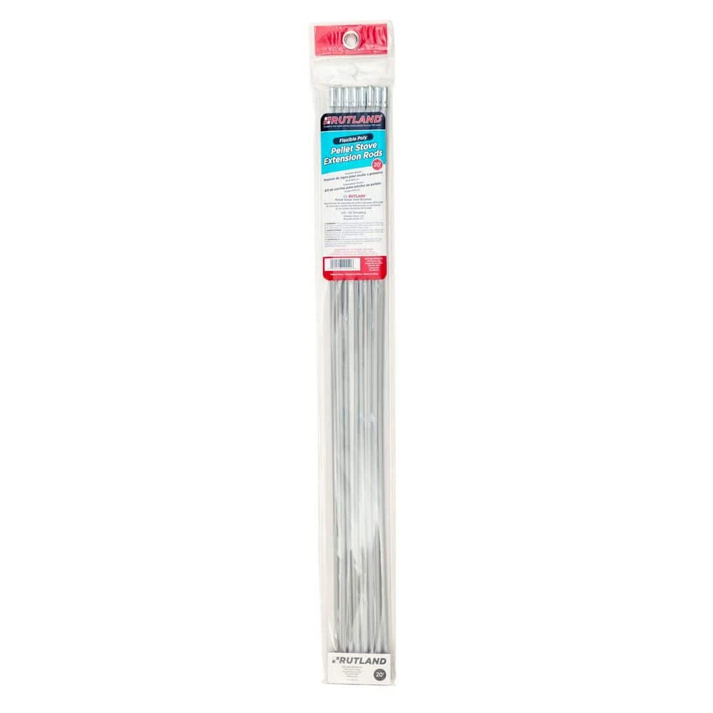 RUTLAND Flexible Poly Pellet Stove Extension Rods are designed for the DIY homeowner. These extremely flexible, 0.25″ diameter poly rods are designed to fit RUTLAND Pellet Stove Vent Brushes with 1/4-20 fittings and easily maneuver 30º and 40° offsets. Rods screw together to extend a brush into and through pellet stove or dryer venting. Rods will bend approximately 360°.