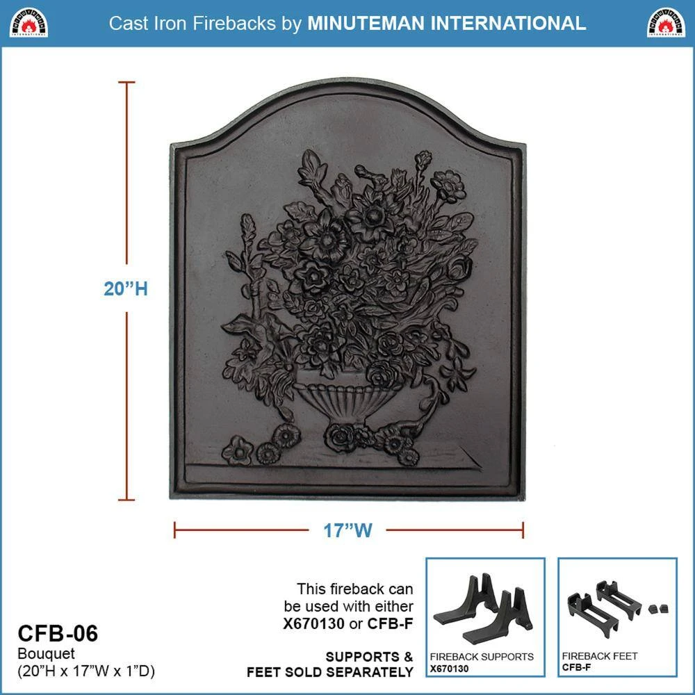 - Options: this fireback may be used directly on the hearth floor or with feet if additional height is desired, such as MINUTEMAN INTERNATIONAL fireback supports (X670130) or fireback feet (CFB-F)