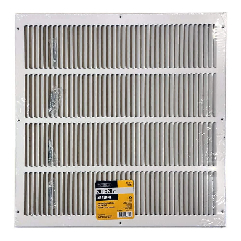 Everbilt Air Return Grilles are designed for maximum air return flow in ceiling and/or sidewall HVAC applications. Our grilles are constructed from stamped steel and finished in a paintable white powder coat finish. Return grille sizing is based on actual duct opening not the overall dimensions of the grille.