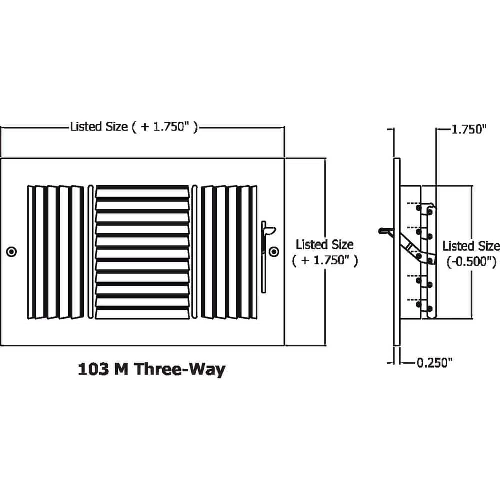 The 103M 20 in. x 06 in. is a 20 in. x 6 in. 3-way air register used for wall or ceiling openings. The stamped face allows for 3-way air deflection. Our patented Smooth glide technology ensures rattle free and quiet airflow from your central air system. Smooth glide also provides for smooth opening and closing of your back dampers. Our high-quality product will ensure years of continuous use.