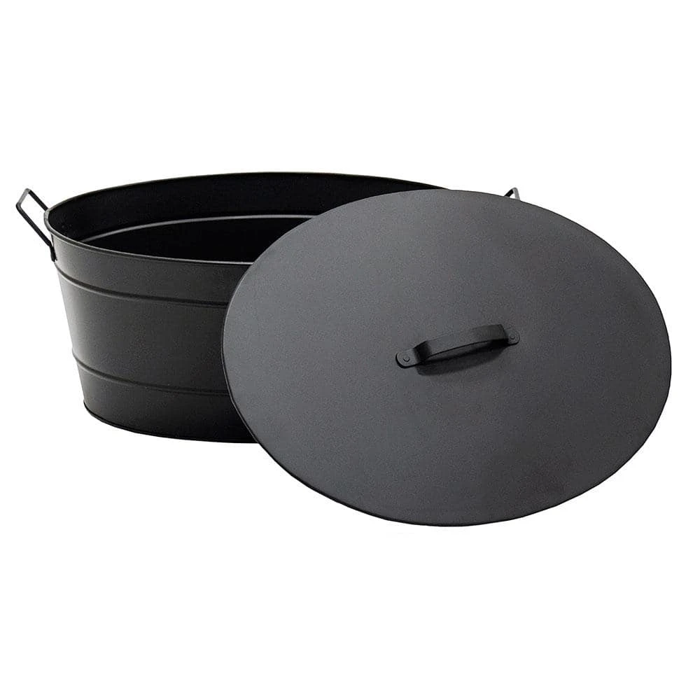 - Traditional farmhouse tub design: this black oval log bin with lid is based on the old-fashioned galvanized metal washtubs and buckets that are ubiquitous on every farm, a classic style for a fireplace accessory