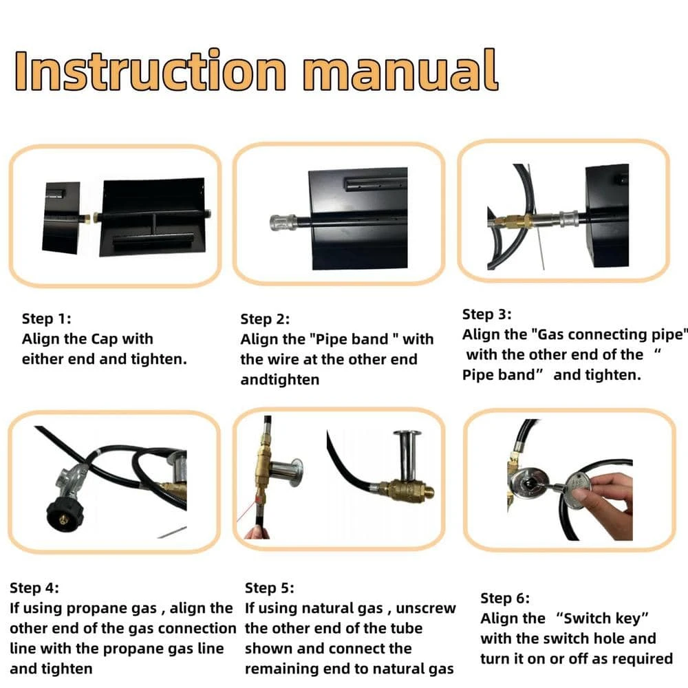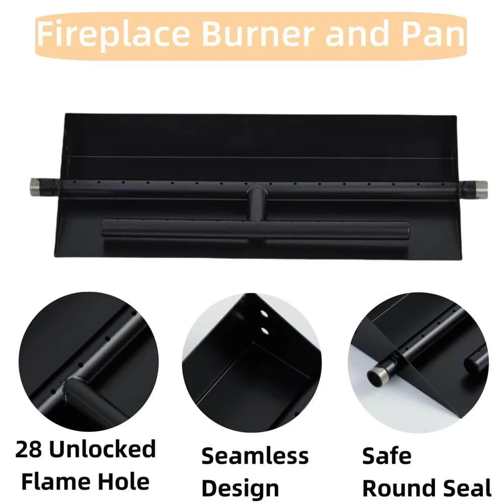Durable Material – The fire pit burner is crafted from carbon steel, which can withstand high temperatures, resist bending, and is corrosion-resistant. This ensures airtightness while providing enhanced durability and longevity. DIY Your Fire Pit – The drop-in design combined with the burner pan adds a fresh and modern touch to your fire pit. By using this fire pit kit to replace a traditional wood fire pit, you can also eliminate the hassle of smoke and ash. Create a beautiful and inviting fire pit for both indoor and outdoor settings. Quiet and Better – All of our flame holes are precision-drilled rather than punched, allowing for smoother gas flow and creating a better flame. This design ensures there is no whistling noise. Dual Fuel Compatibility – This versatile drop-in fire pit burner kit is compatible with both natural gas and propane, providing flexibility for any setup. An air mixer ensures optimal performance when using propane. Nice Match – Enhance your fire pit by adding decorative fire glass or lava rocks to create a stunning firelight effect. Build a unique gas fireplace insert or propane burner setup to add warmth and elegance to any space.