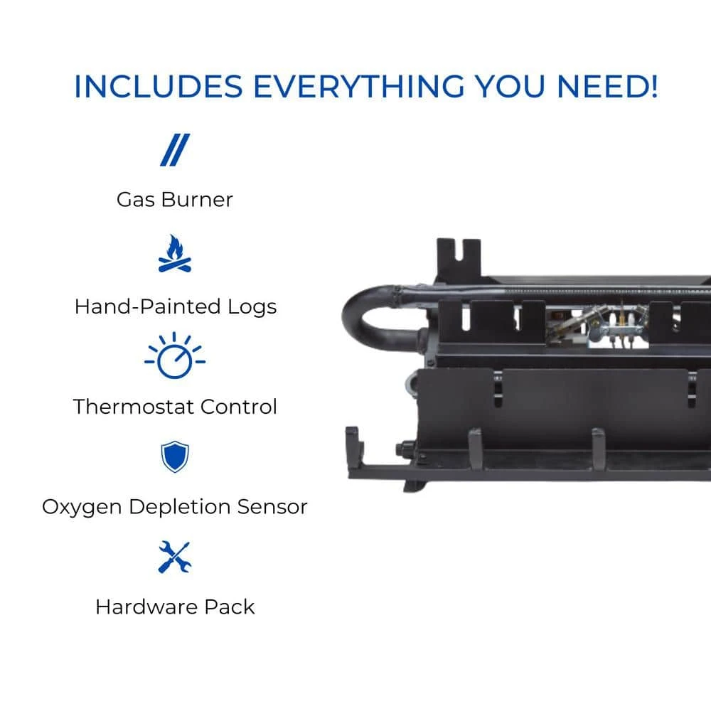 Enhance the ambiance and warmth of your living space with the Duluth Forge Ventless Dual Fuel Gas Winter Oak Log Set. This versatile log set is designed to deliver both style and efficiency, making it a perfect addition to any home. With its 22 in. size and realistic oak appearance, it brings the charm and beauty of a traditional wood-burning fireplace without the hassle of wood chopping or ash cleanup. Featuring a powerful 32,000 BTU output, this log set ensures that you stay cozy and comfortable during chilly evenings. The thermostat control allows for easy temperature adjustment, giving you full control over the level of warmth in your room. Whether you prefer the natural warmth of propane or the convenience of natural gas, this log set offers dual fuel capability, providing you with the flexibility to choose the fuel source that suits your needs. The hand-painted logs are made from superior refractory ceramics, ensuring durability and a lifelike appearance. The Winter Oak finish replicates the natural beauty of aged oak logs, complete with intricate grain patterns and authentic coloring. With its ventless design, this gas log set eliminates the need for a chimney or venting system, making installation hassle-free and allowing you to enjoy the warmth and beauty of a fireplace in any room. The compact 22 in. size makes it suitable for various sized fireboxes.