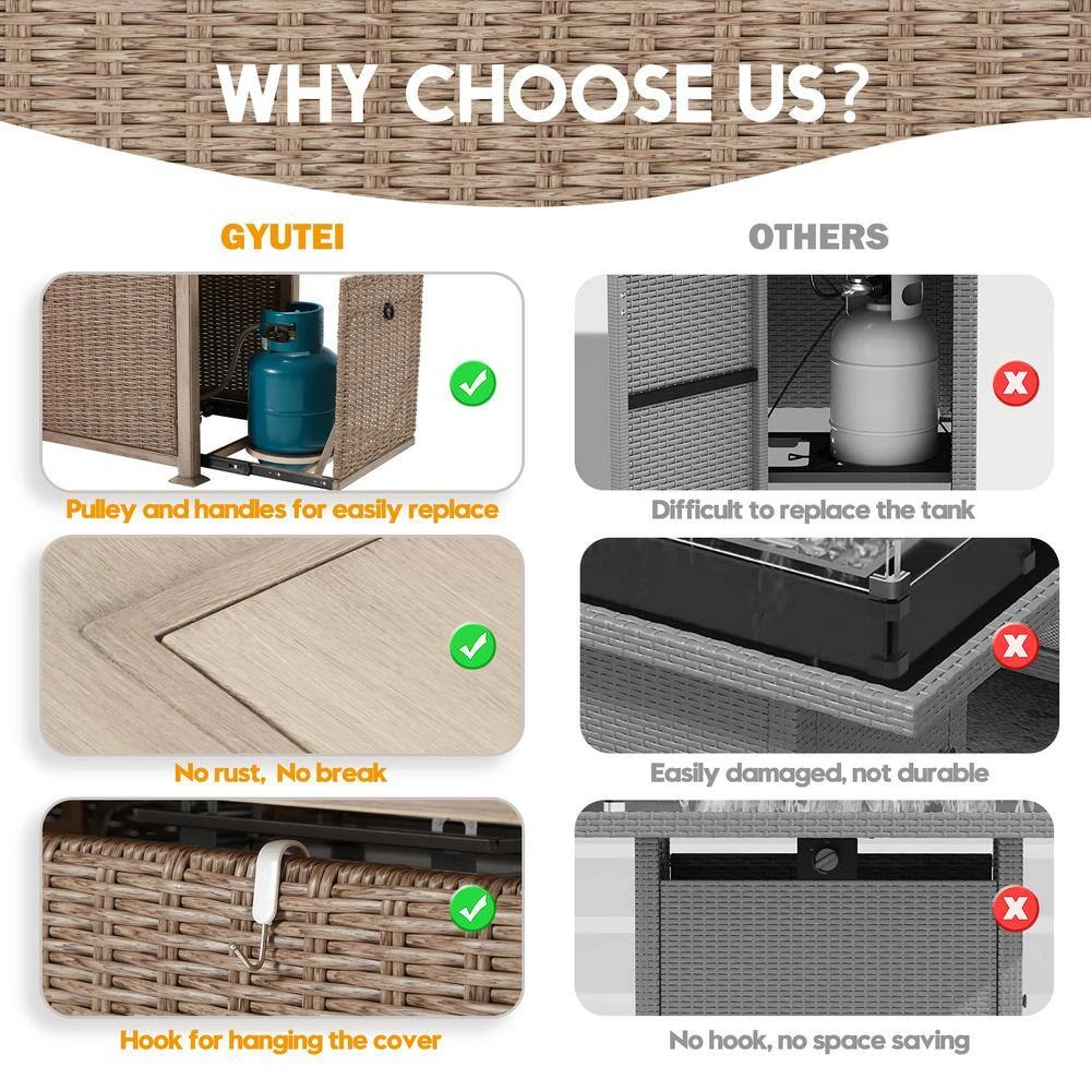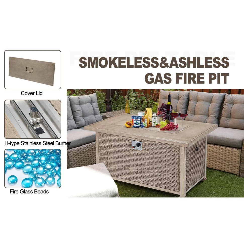 To provide customers with high-quality products and a high-satisfaction shopping experience is what we are constantly pursuing and practicing. If you haven’t found a stylish fire pit that gives you complete peace of mind, then consider this Fire Pit Table. The metal tabletop allows you to stop worrying about the danger of glass blowing up. The unique design of the wood grain with rattan texture makes the entire fire pit more elegant and stylish and can be perfectly integrated into various scenes.