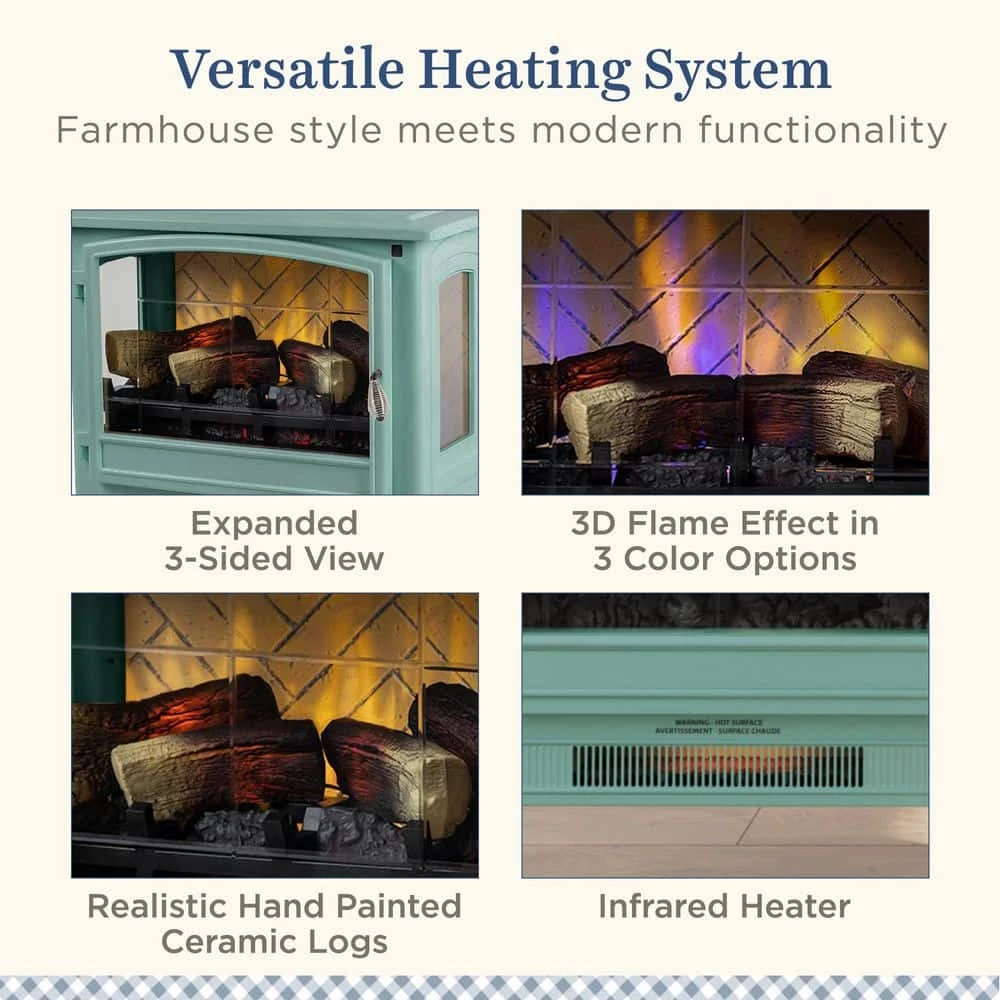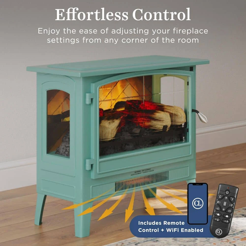 This Country Living Smart Freestanding Infrared Electric Fireplace Stove is classically styled to provide rustic charm in a modern package. Easily adjust your temperature settings, timer, power on/off, and flame color/brightness with the multi-functional remote or App. With Wi-Fi, connect to your favorite home assistant Alexa. With an all-metal body and herringbone patterned faux brick paneling, the quality and detailing of the stove really stand out. The stove’s bright LED-lit flame projections and inner glowing hand-finished logs take center stage with the simple press of a summary, bringing life to the adjustable, multi-colored flame effects. With a powerful thermostatic heater, you can easily warm any space up to 1,000 square feet with comforting supplemental heat. The meticulously designed bottom venting heater also allows for greater, unobstructed visibility of the dancing flame projections. Light weight and easily portable, it’s easy to move the stove from room to room or wherever a little extra heat is needed in your home. Additionally, for all-season enjoyment of the fires ambient glow, simply turn off the heater to continue to experience the flickering flames year-round.