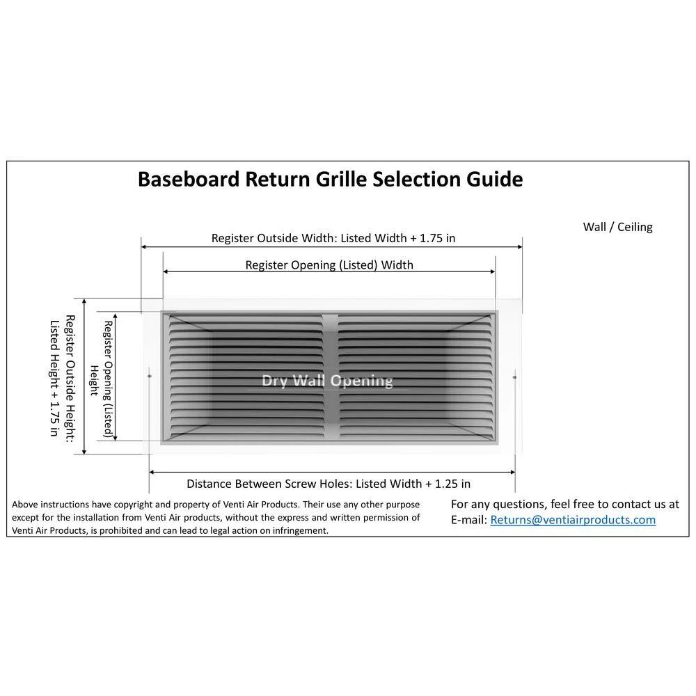 - For 24 in. width x 8 in. height rectangular baseboard duct opening
