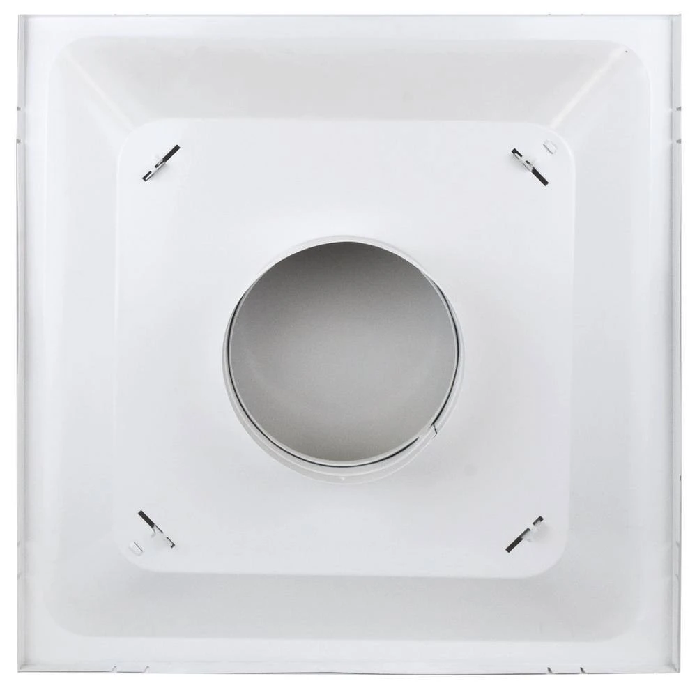 Square center plaque air diffuser is for T-Bar, Drop Down, Lay in ceilings. Flat face sits flush with ceiling. 2-1/2 in high grooved collar makes installation easier and faster. Optional damper sits in the groove.