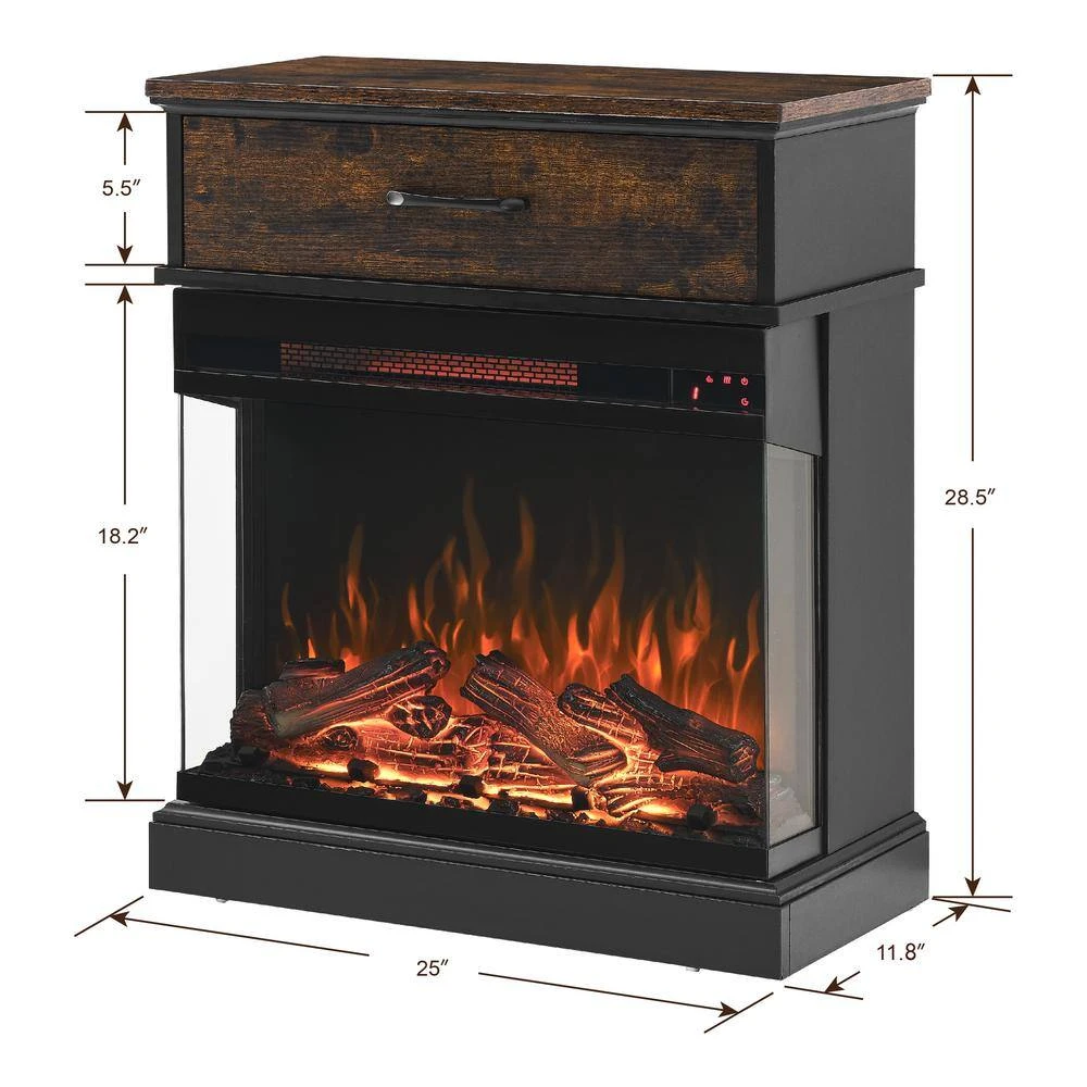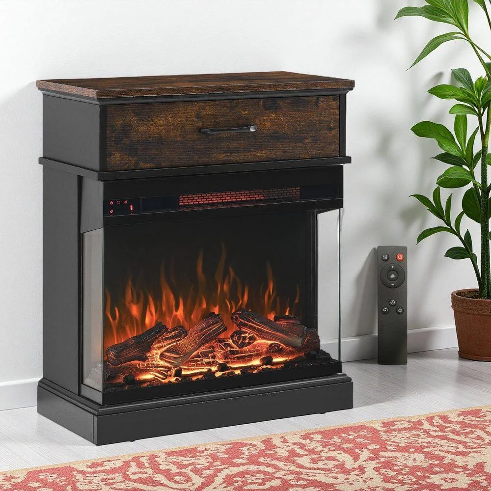 Looking for a heater that not only ensures long-term service and your safety, but also offers advanced features for enhanced comfort at home Our CSA/UL certified product features dual safety protections – an overheat protection device and a fuse – ensuring peace of mind. It plugs into any standard 120-Volt outlet, providing 1500-Watt of power that heats up to 400 sq. ft. with 11 temperature settings from 64°F to 82°F. Enjoy its innovative three-sided design with four flame colors, adjustable brightness, and 5 flame speeds, whether you prefer the ambiance with or without heat. With a timer function up to 9 hours, intuitive remote control, and high-quality touch summarys with a digital display, operation is convenient and pet-safe. Simple assembly with numbered components and tools means you’ll have this stylish end table heater set up in no time, enhancing your home with reliable, user-friendly warmth.