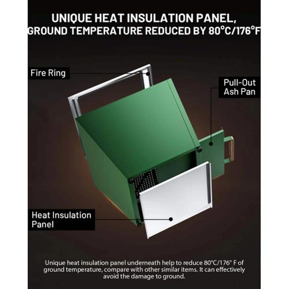 - Innovative pull-out ash pan under wood burning fireplaces, makes you easily pull the ash pan out of the fire bowl to remove accumulated ash, without interrupting the fun of outdoor activities, it is more convenient and safer than the traditional ash pan, which can only pour out the ash by turning the entire product over completely after the entire stove is extinguished