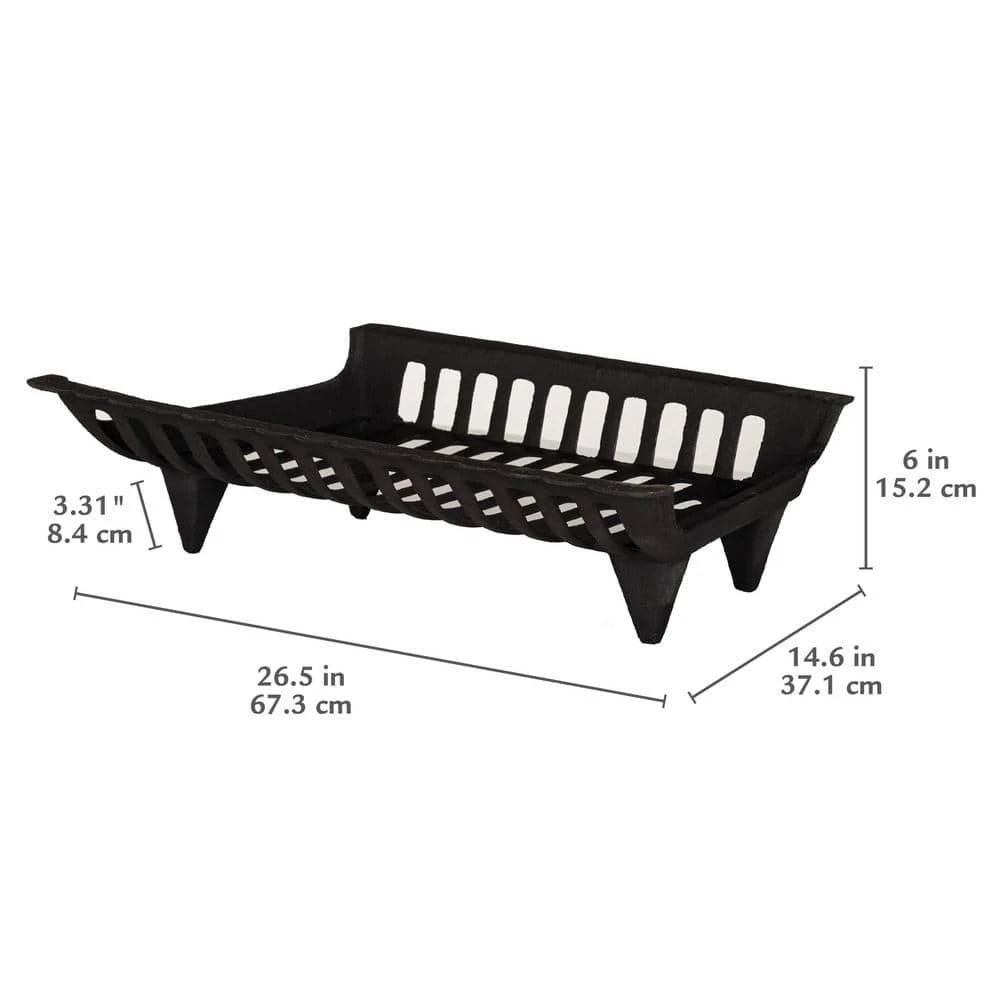 The Pleasant Hearth CG27 27-in Cast Iron Fireplace Grate measuring 26.50-in L x 14.60-in W x 6-in H completes the scenery of your indoor fireplace with a continuous fire for you and your family to enjoy. The durable cast iron construction on this metal grate holds up to four average sized firewood logs 3.25-in above the fireplace floor. This, combined with the meticulously placed openings, allow air to flow throughout the firebox and feed the fire for flames that burn hotter and last longer. Additionally, the solid, molded structure has enough cast-iron material to hold in embers which will help keep a fire going long into the night. The grate also creates a centralized ash pile for easier cleanup. The fireplace grate is ready for use in your wood burning fireplace right out of the box – no assembly required! The product comes with a 1-Year Limited Warranty. Pleasant Hearth offers four different sizes of these grates to accommodate different sized fireplaces – find the right grate for your firebox with our sizing guide.