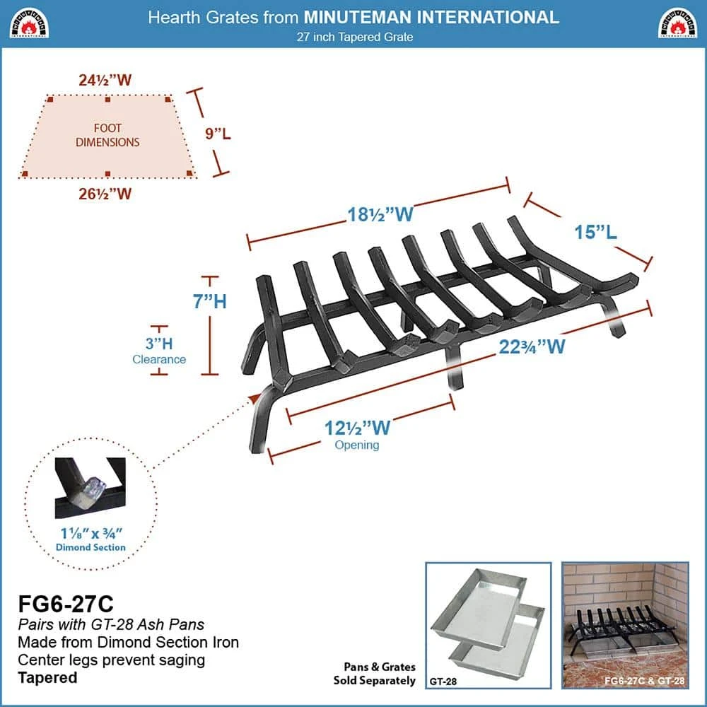 - Matching options: slide our minuteman ash pan GT-28 below to collect ash and debris, for easy clean-up with no need to remove the grate