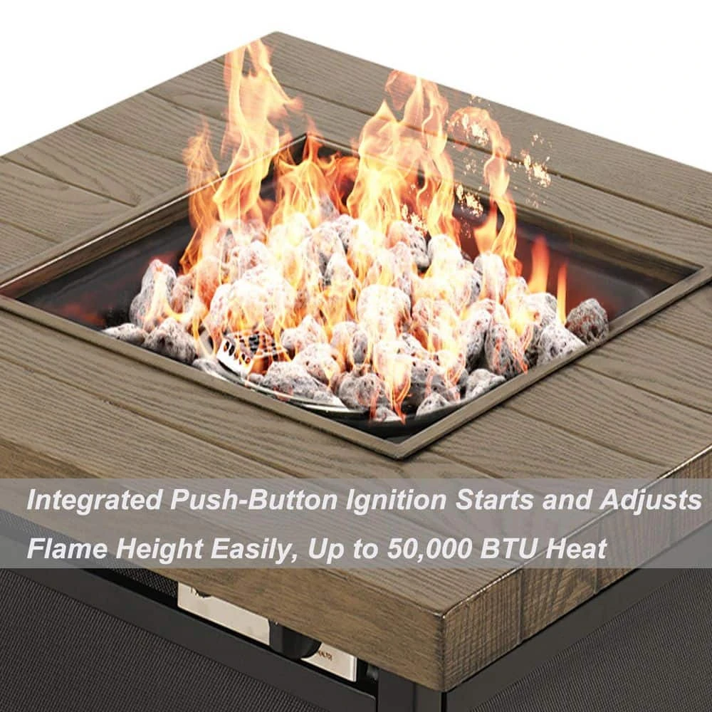 The Patio fire pit is perfect for many people to make fire in the courtyard, yard or garden. This outdoor square fire pit is composed of heavy-duty steel nets and frames, and is constructed in a square shape to increase stability. It is equipped with a mesh lid to prevent burning embers and fire poker, to ignite the fire and to remove the mesh lid safely. This beautiful and safe design firepit makes it ideal for heating, grilling and cooling drinks on terraces, gardens and yards.