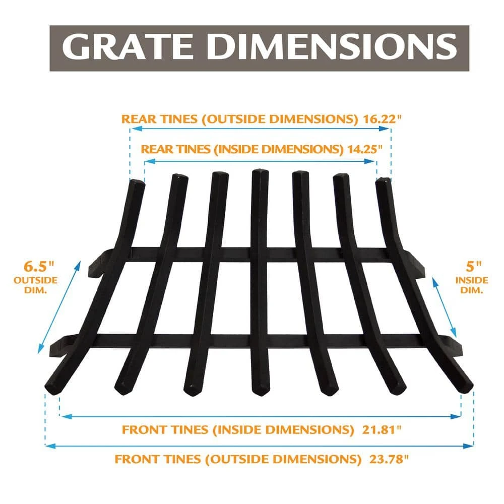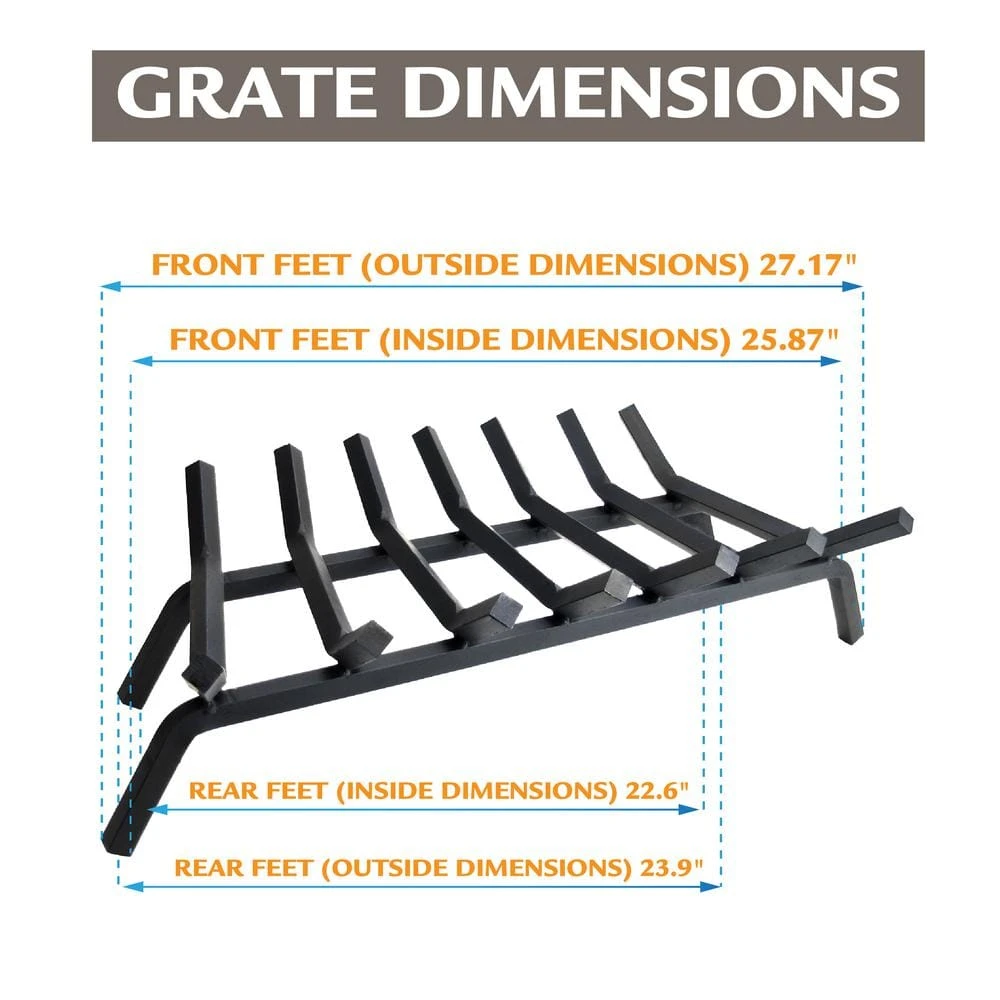 The Pleasant Hearth BG7-277M 27-in Steel Fireplace Lifetime Grate measuring 27.17-in L x 13.58-in W x 7.68-in H completes the scenery of your indoor fireplace with a continuous fire for you and your family to enjoy. The seven thick, sturdy 3/4-in bars on this metal grate hold up to four average sized firewood logs 4.53-in above the fireplace floor, allowing air to flow throughout the firebox and feed the fire for flames that are hotter and last longer. The fireplace grate is ready for use in your wood burning fireplace right out of the box – no assembly required! The Pleasant Hearth fireplace accessory boasts heavy-duty construction, formed from solid cold rolled steel. This fireplace grate is designed to last a lifetime, which is why it comes with a Limited Lifetime Warranty. Pleasant Hearth offers several different sizes of these long-lasting grates to accommodate different sized fireplaces – find the right grate for your firebox with our sizing guide.