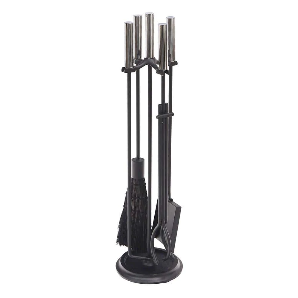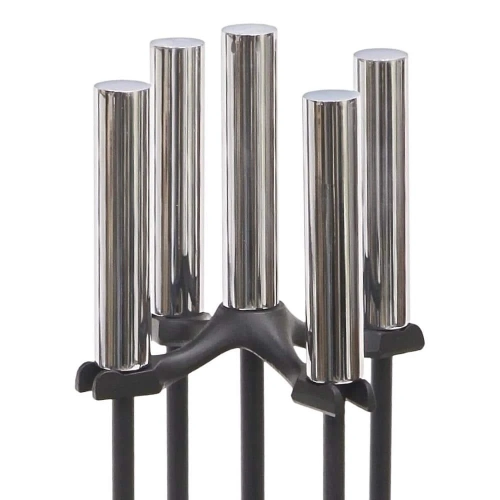 - Contemporary style hearth set: the simple, straight cylinder shaped handles are clean and modern, with 4 essential tools and a simple round base
