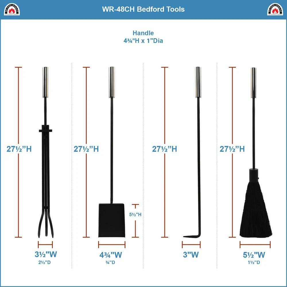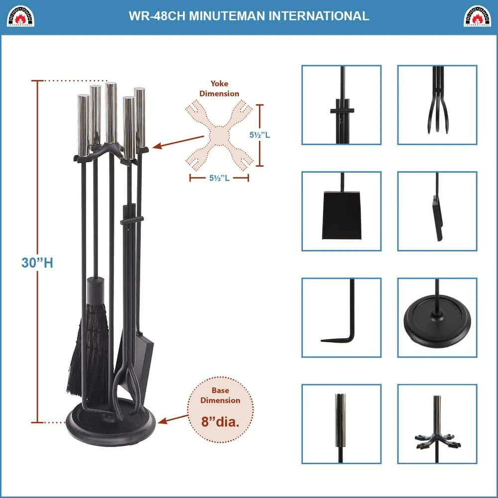 - 4 tools and stand: features a fireplace poker, shovel, natural sorghum brush and T1-style tong, with 3-point capture for secure and safe fire-tending