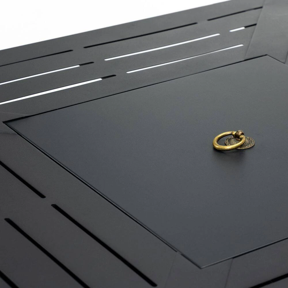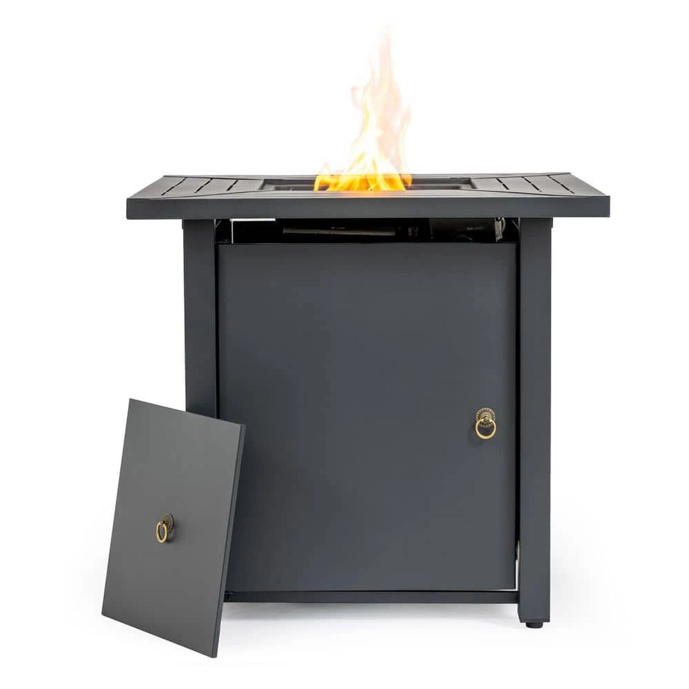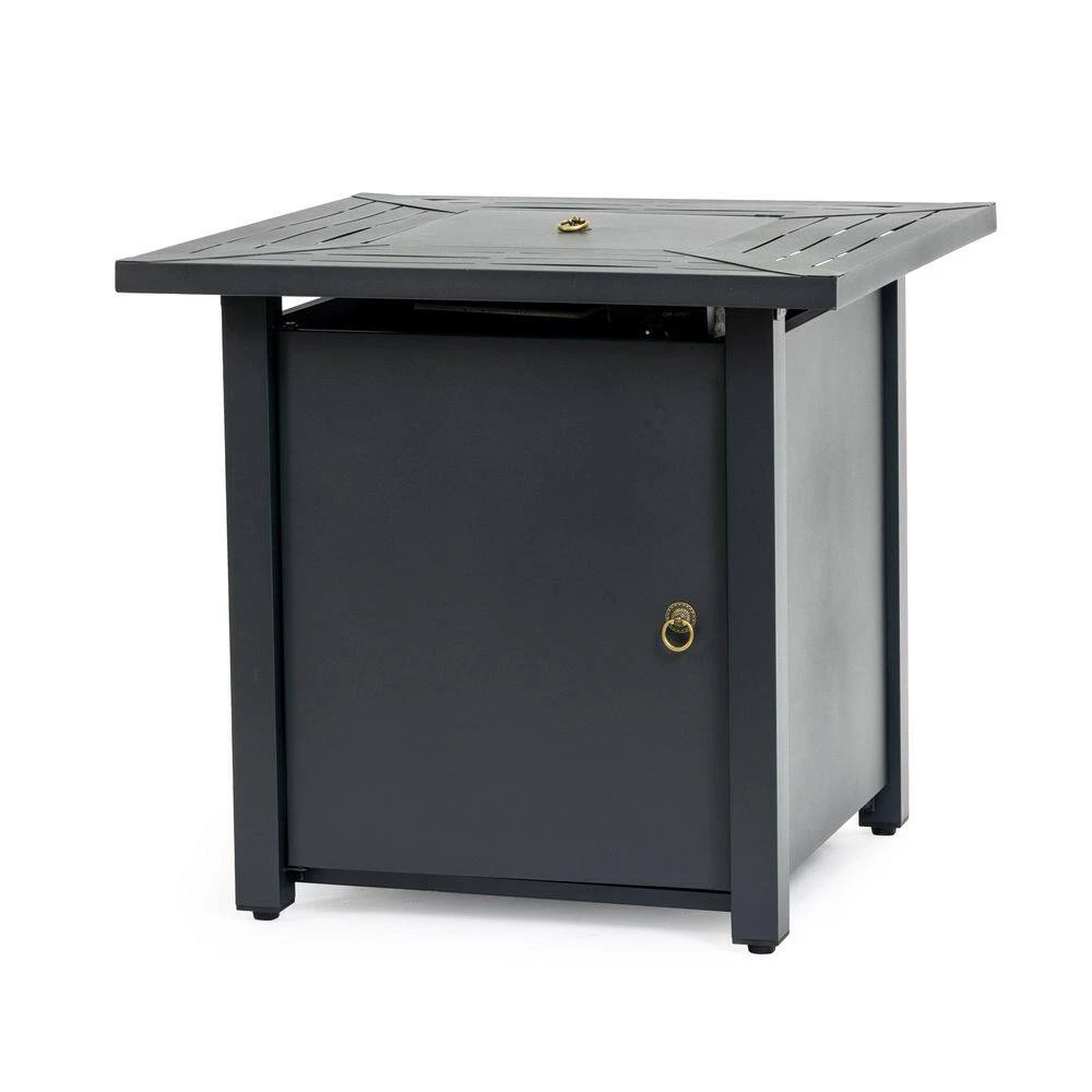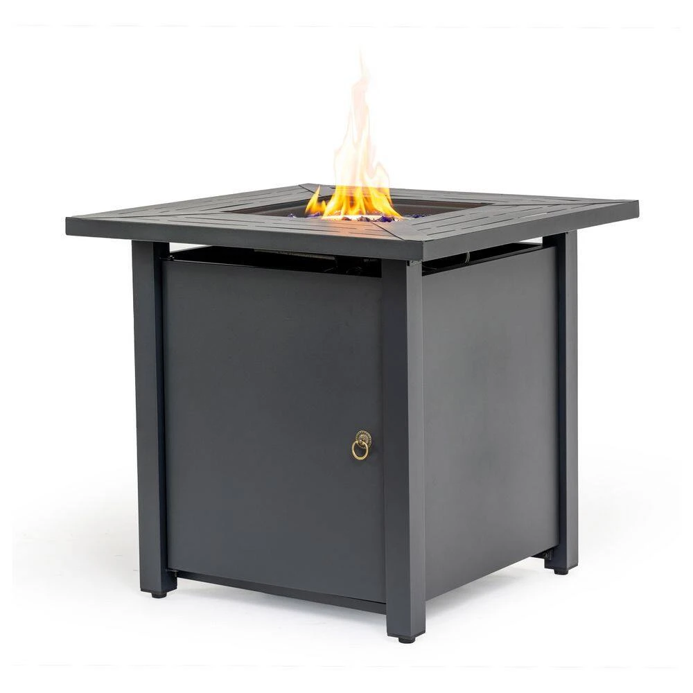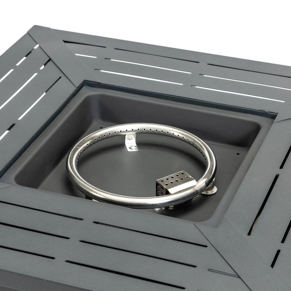 Refresh your outdoor space with this sleek 30 in. square propane fireplace table that blends modern design with rich warmth. The rust-resistant iron construction features elegant bar vents that effortlessly convert from a cozy fire pit to a functional patio table. It comes fully assembled with hidden propane storage and a full complement of accessories, making it ideal for year-round entertaining.